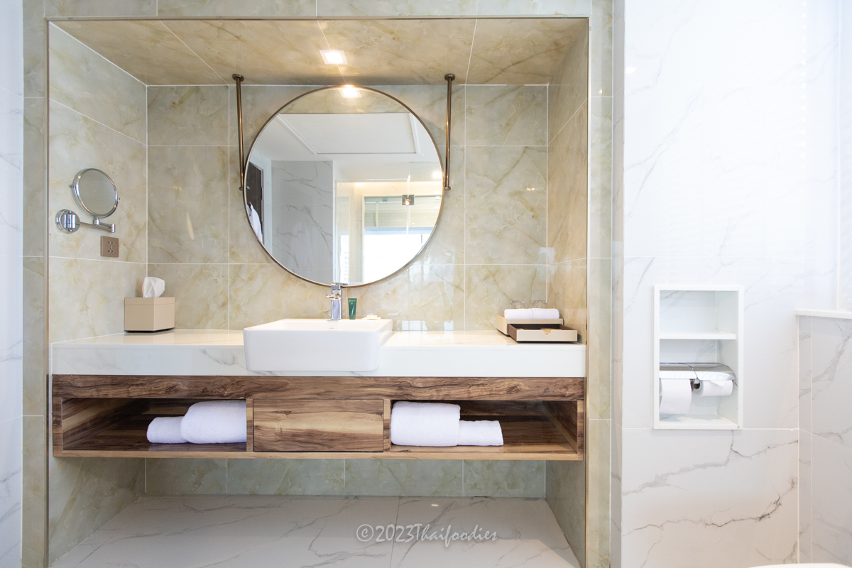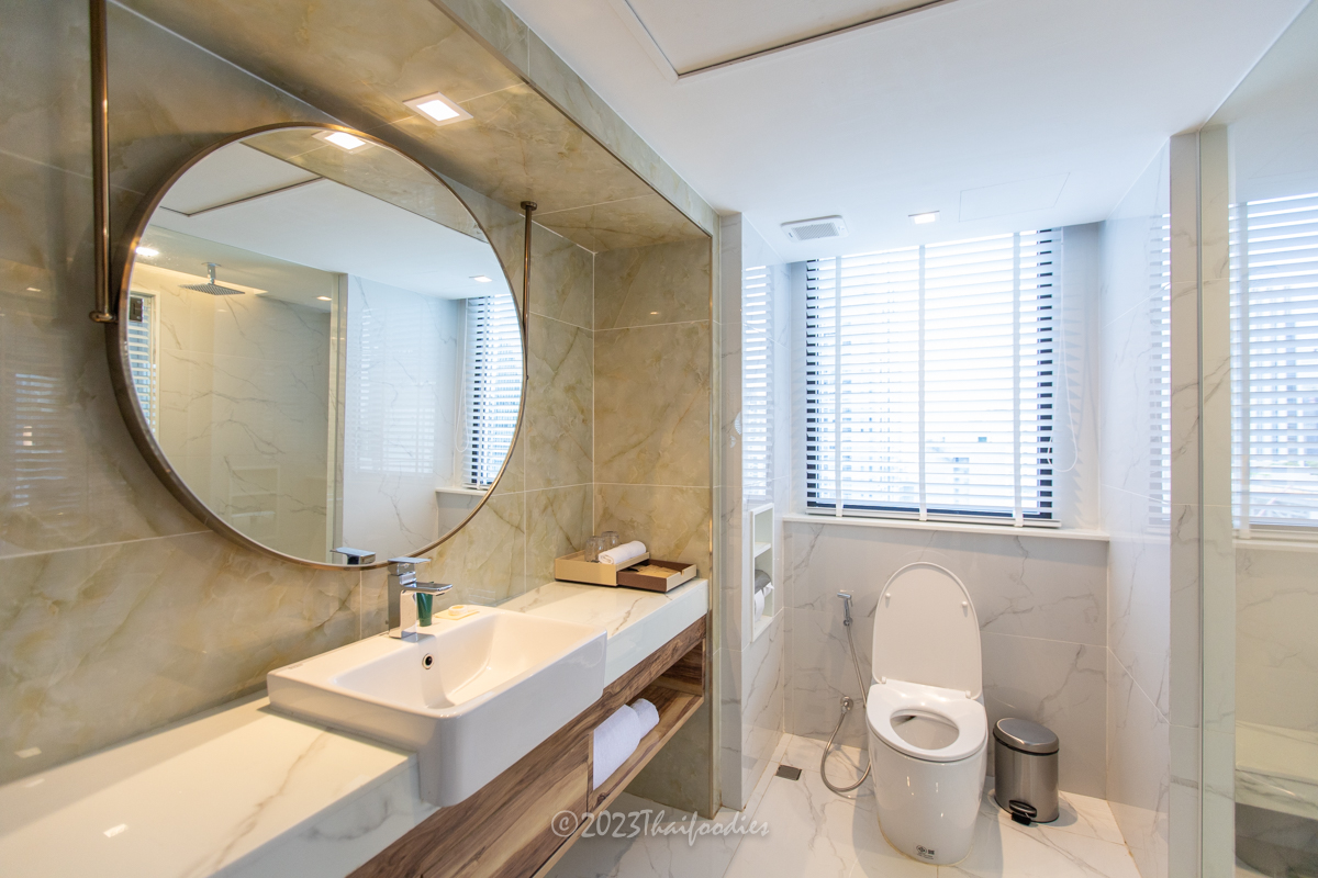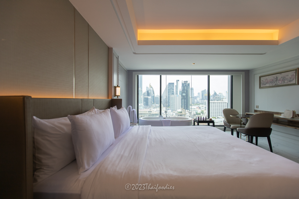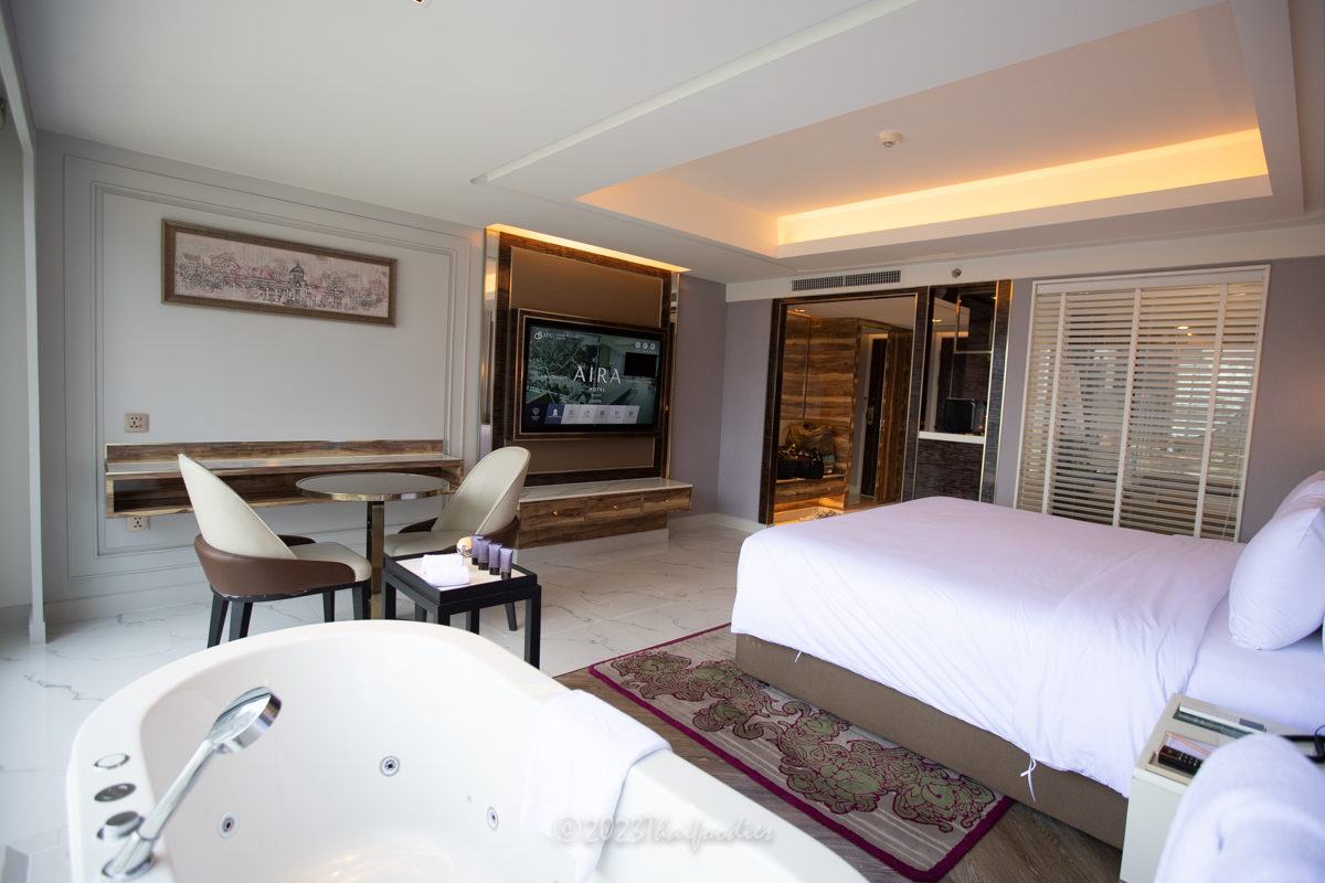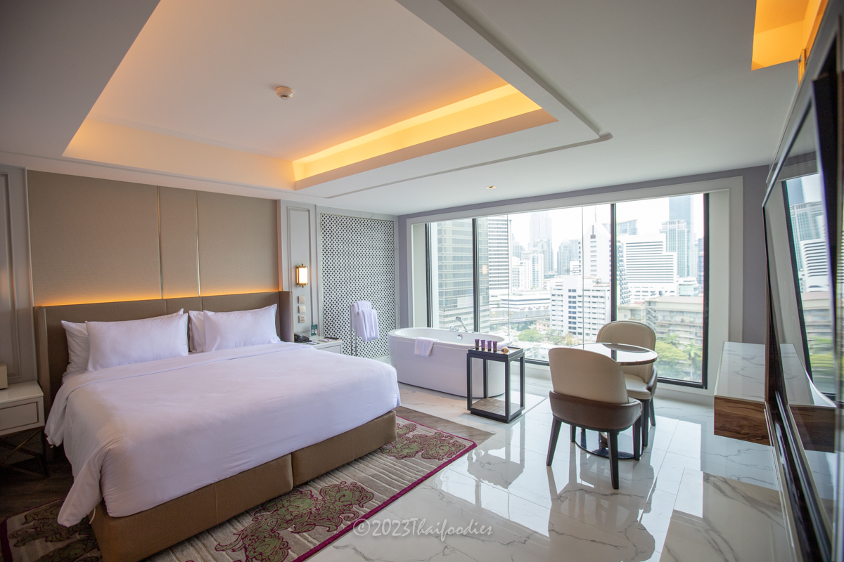 We stayed in the Jacuzzi Corner Room 32sqm, which was a very nice and spacious room. I loved the elegant design with white marble and gold accents. a unique blend of traditional Thai designs and European colonial influences.