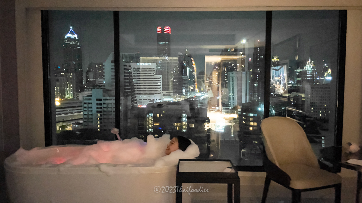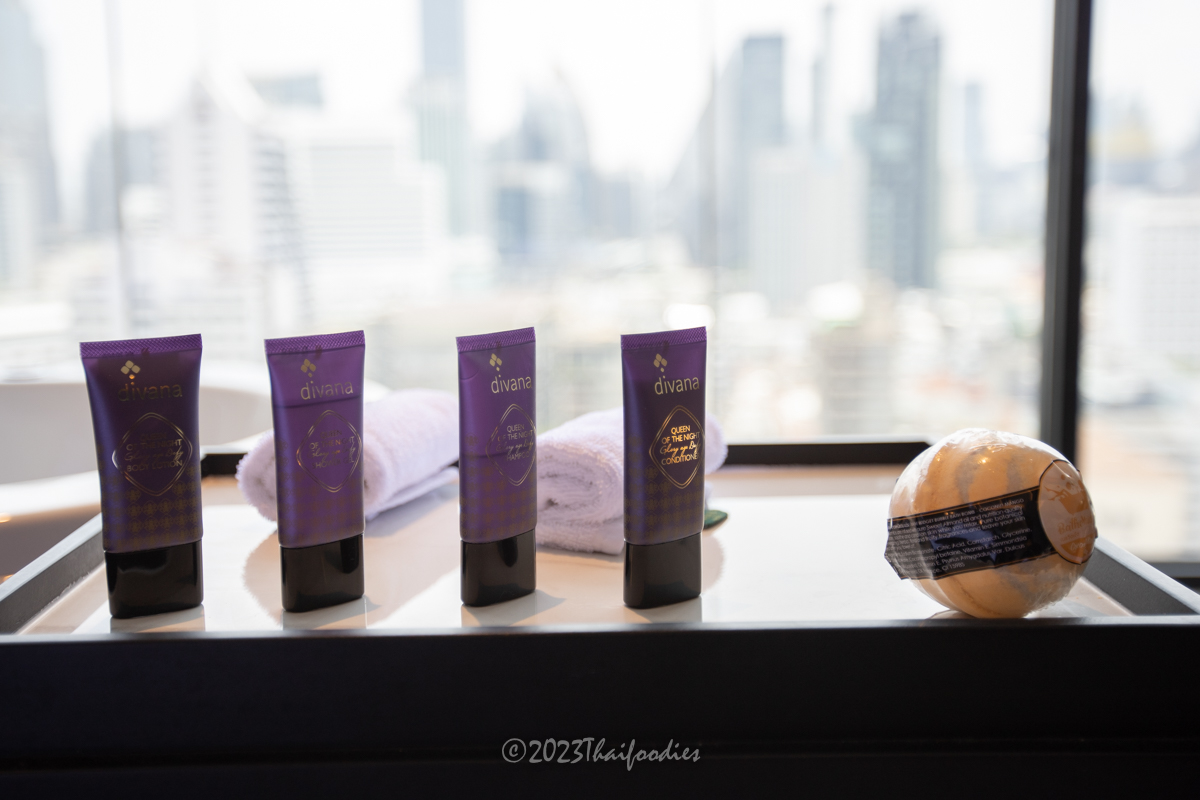 The Jacuzzi bathtub had a great view of the city, which was perfect for relaxing in the tub. (with luxury amenities from Divana Spa)