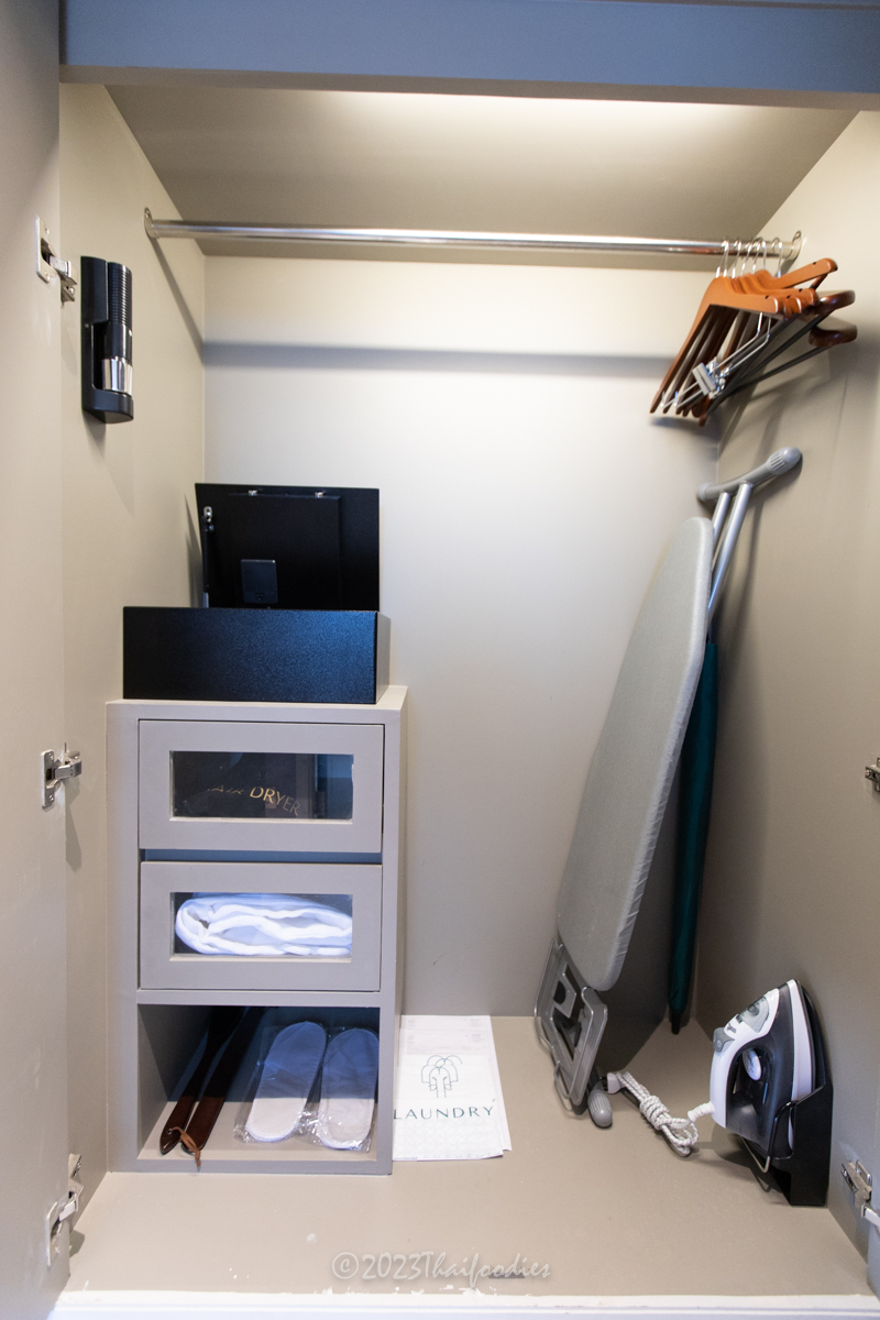 A separate lavatory and bathroom with toiletries, a wardrobe with a safety box, slippers, and a bathrobe.   I feel very chillaxing with this Jacuzzi corner room.