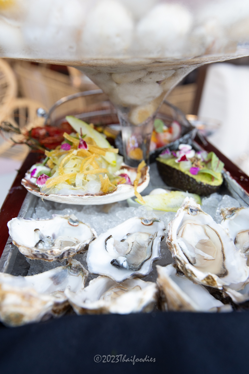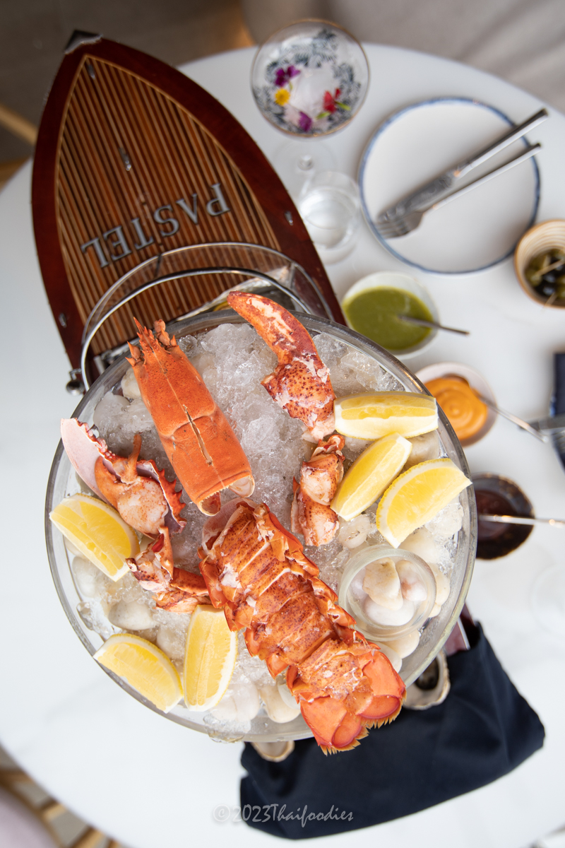 This is served on a mini yard and is beautifully presented. It includes fresh oysters from France (fin de Claire), fresh and tasty lobster from Maine, scallops sashimi, prawns, and 3 different types of sauces.