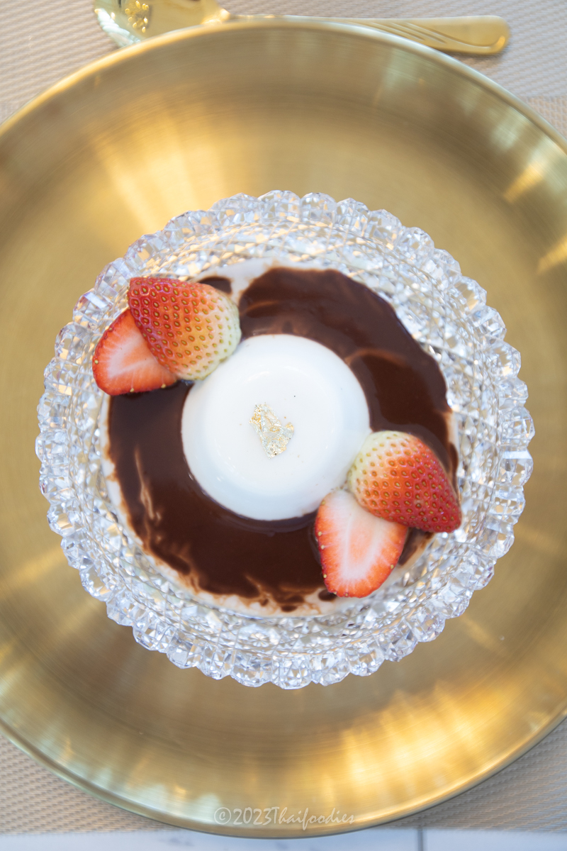- Panna cotta with chocolate sauce - A traditional dessert of northern Italy, the bounce texture of this yummy panna cotta poured with chocolate sauce served along with fresh strawberries and yeah! It's yummy!