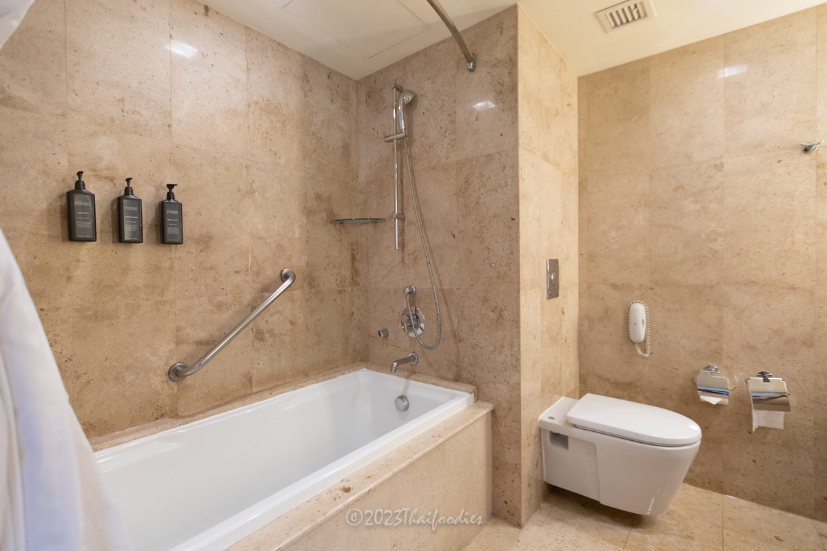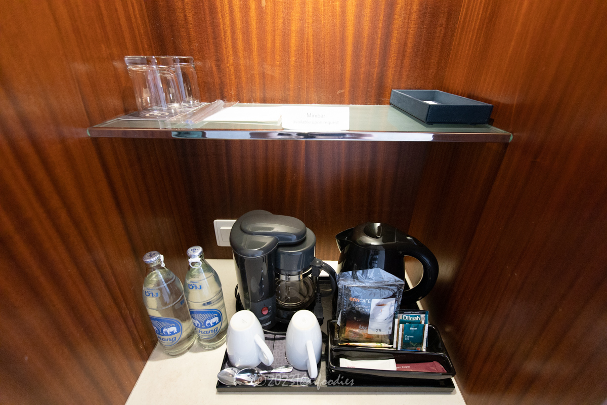 The room was spacious and comfortable, with a stunning view of the Chao Phraya River. The bed was king-size and cozy, and there was a sofa couch and a work desk area. The refrigerator was stocked with free still water, coffee, and tea. The bathroom had a shower/bathtub combination, and all of the toiletries were provided.