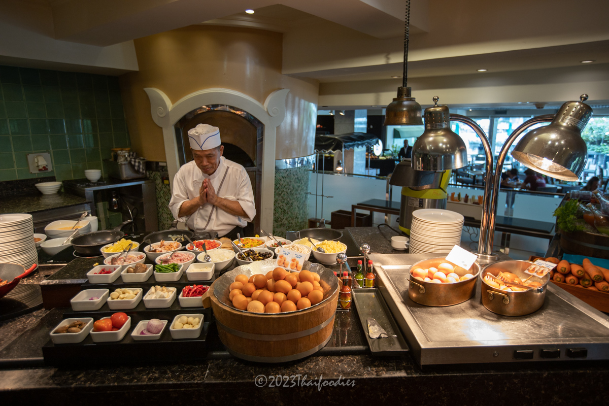 We slept well that night, and the next morning we had breakfast at Feast. The breakfast buffet had a wide variety of food, including Thai dishes, Western dishes, and pastries.