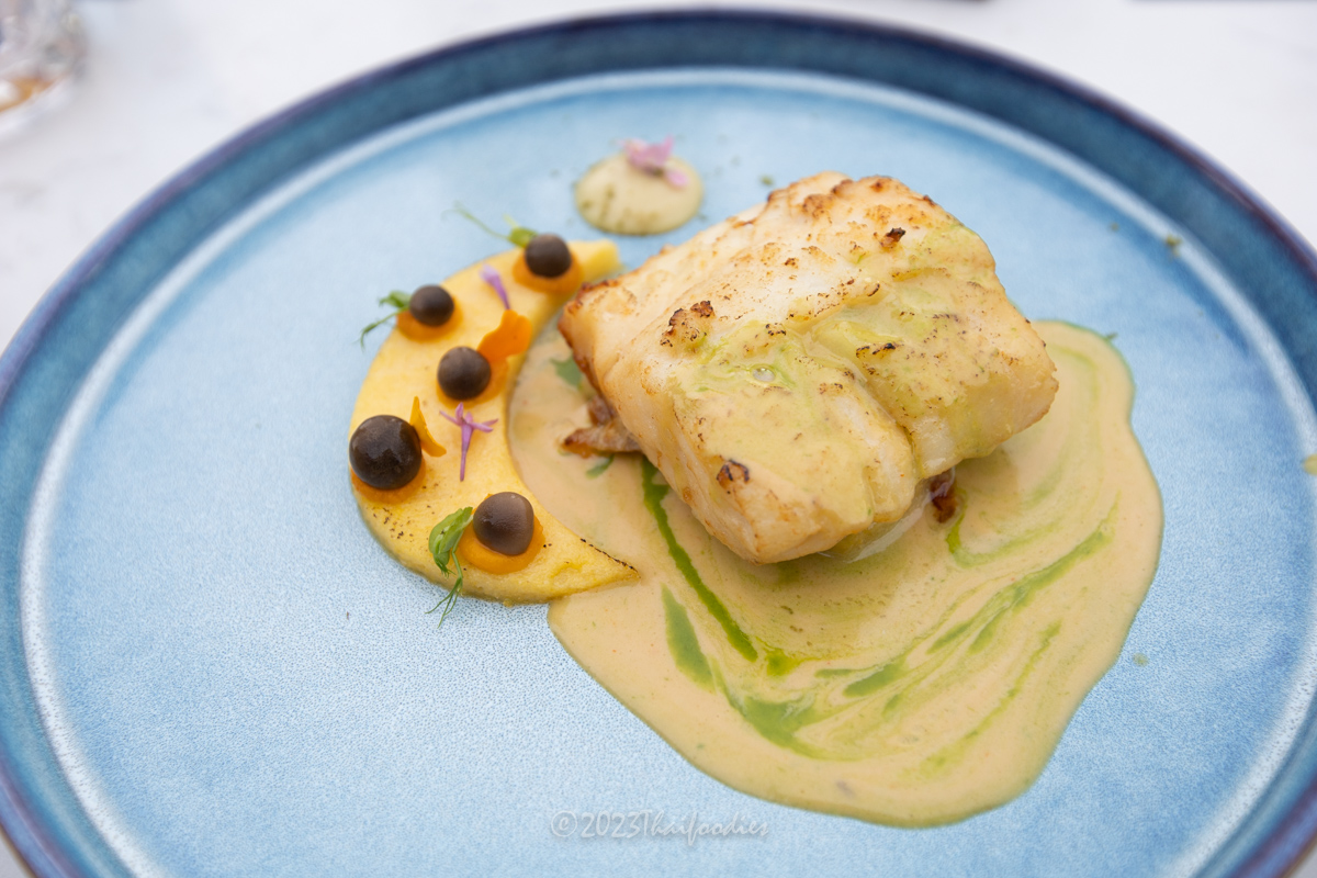 Cod fish miso glaze, Pickled mushroom / Lemon zest / Garlic Lime Leaf cream.