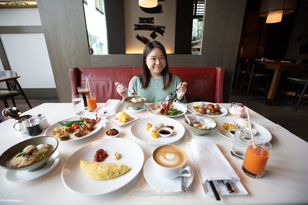 The buffet offered an array of options, including freshly baked croissants, waffles, pancakes, cold cuts, bacon, dim sum, and a variety of hot dishes. The Egg station allowed for personalized egg preparations, while fresh fruits and a selection of beverages were available to complete the meal.