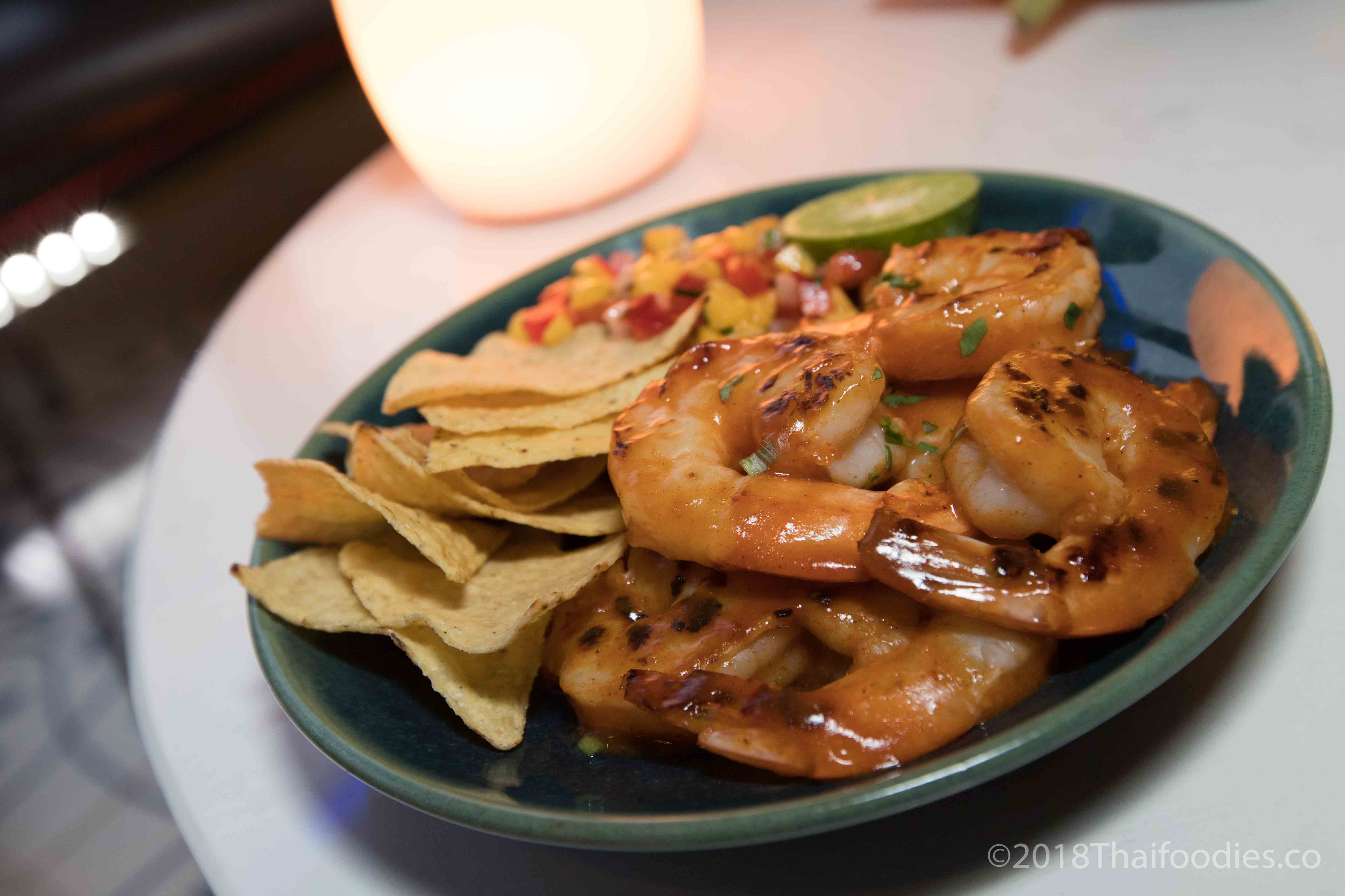 The food on offer at Aire Bar is varied and affordable so be prepared to eat when you visit as you will not be able to resist. First we tried the Bun Samosa (180 Baht++) – just one of several vegetarian dishes on offer. Next was a yummy Diavola Pizza (370 Baht ++), then Larb Moo Tord which is deep fried minced pork with herbs – a spicy Thai treat that is a must try! (240 Baht ++) Lastly, we sampled a Tex Mex styled Spicy Grilled Shrimp served with tortillas and salsa (320 Baht ++) – delicious!