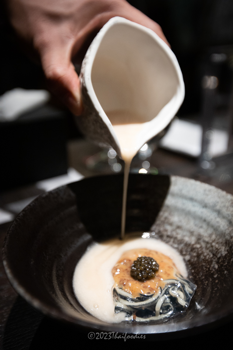 reincarnated | grated shrimp yolk / yin-yang egg noodle / morel / caviar