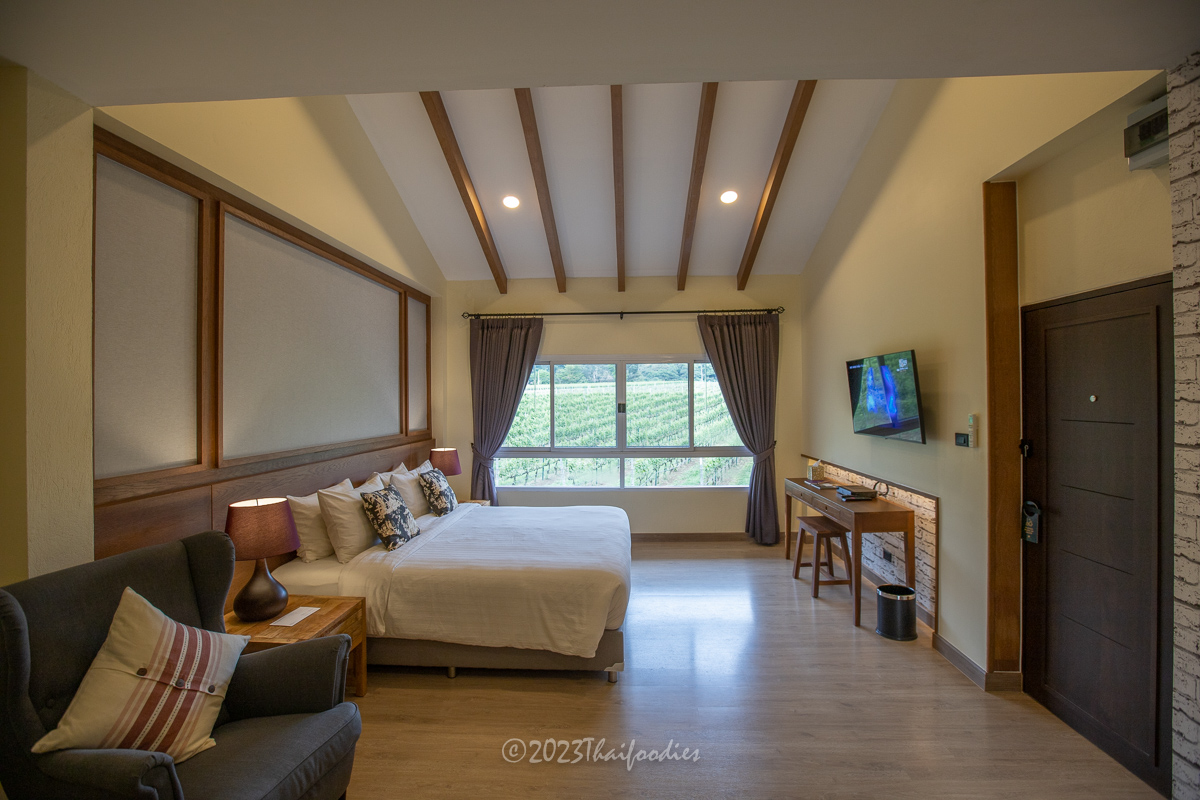 We chose to stay in the intimate Wine Cottage, featuring only 7 rooms. Our room, Cottage number 8, a Vineyard Deluxe on the 2nd floor, offered a cozy and private atmosphere. Upon arrival, guests are welcomed with a choice of Rosé wine or 100% Shiraz Grapes juice from the winery.