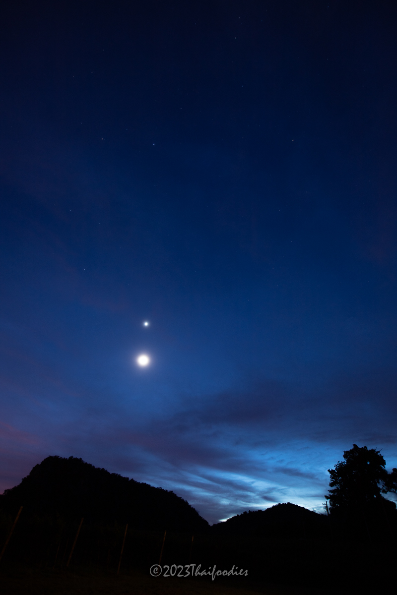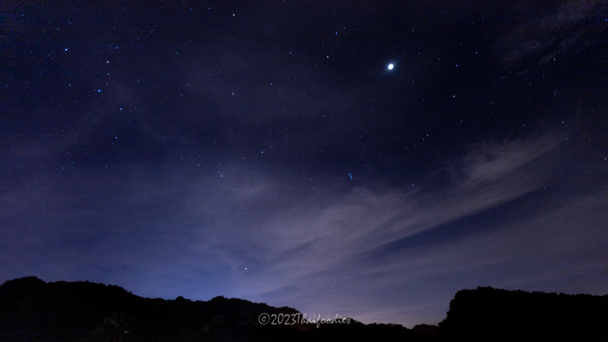 We captured a stunning picture of Venus, stars, and the moon during our nighttime stargazing, making it a perfect night ever.