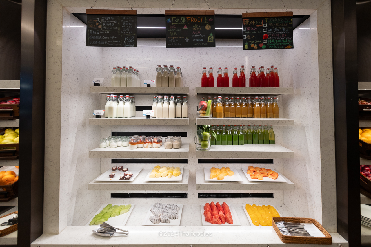 Breakfast at "Andaz Kitchen" "Andaz Kitchen" serves breakfast daily from 6:30 to 10:30 AM, offering a delightful mix of Chinese-Portuguese and international cuisine. We especially loved the, a Chinese soup dumpling with a delicate minced pork filling and a burst of flavorful soup inside. The dumplings are freshly made, with one side perfectly soft and the other lightly crispy—absolutely delicious! The breakfast spread is extensive, featuring: