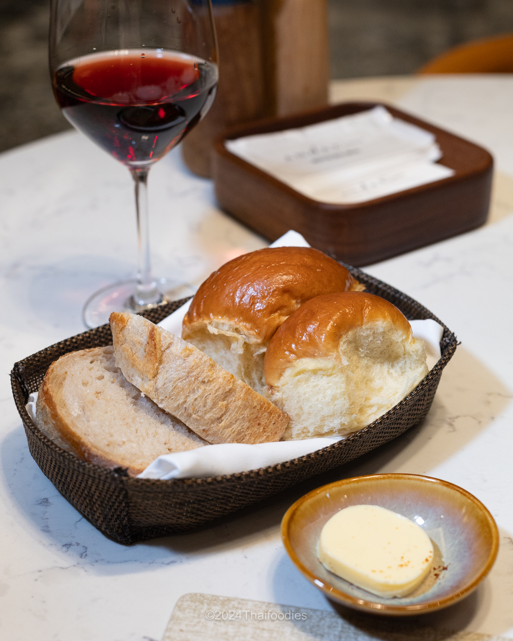 First serve Sourdough and Brioche bread with fresh butter.