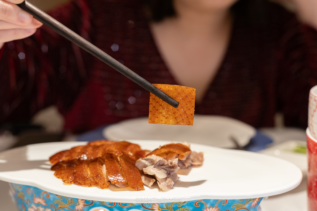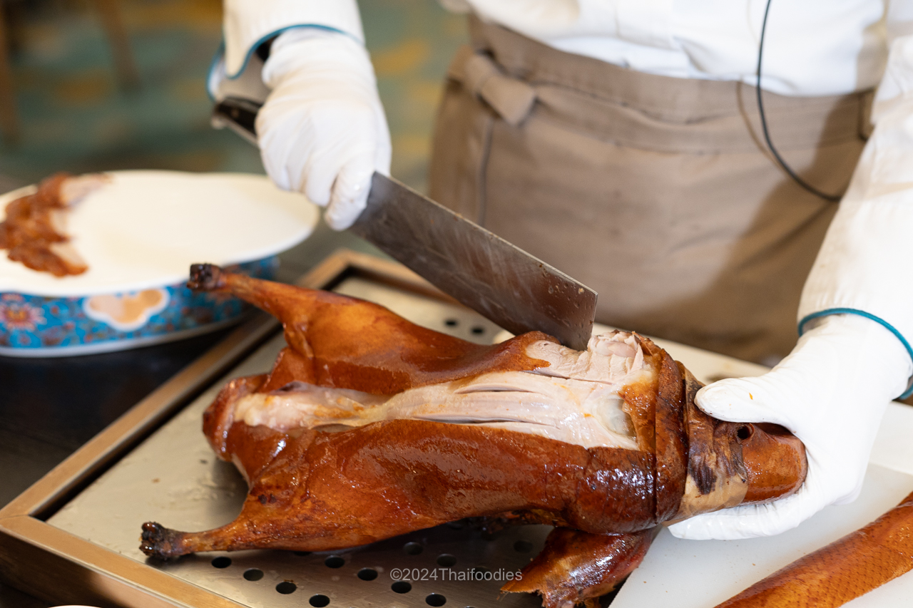 - Prepared with an authentic Beijing recipe using 15-day-old Peking duck, roasted over a special charcoal grill.