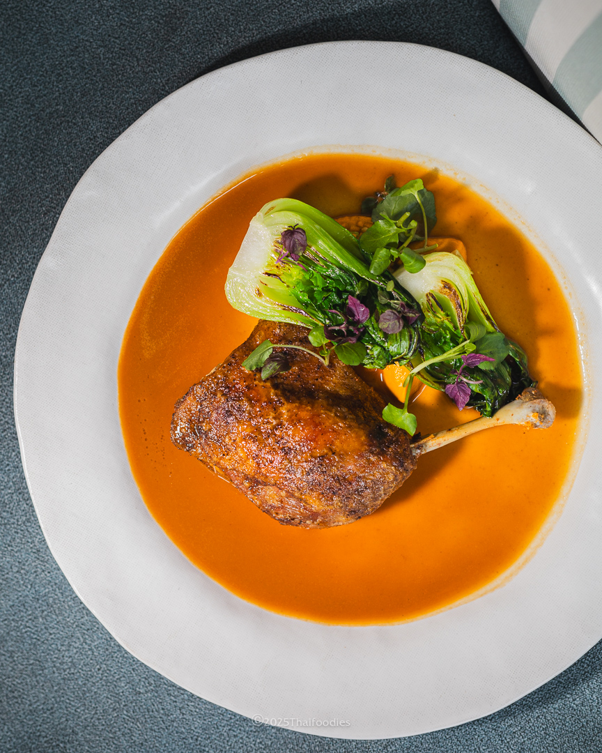 This dish is all about balance. The duck is cooked to perfection—tender on the inside with a crispy skin, just as a classic confit should be. The carrot puréecarrot purée brings a sweet contrast, while the bitter orange sauce adds acidity and depth, keeping the dish light and harmonious.