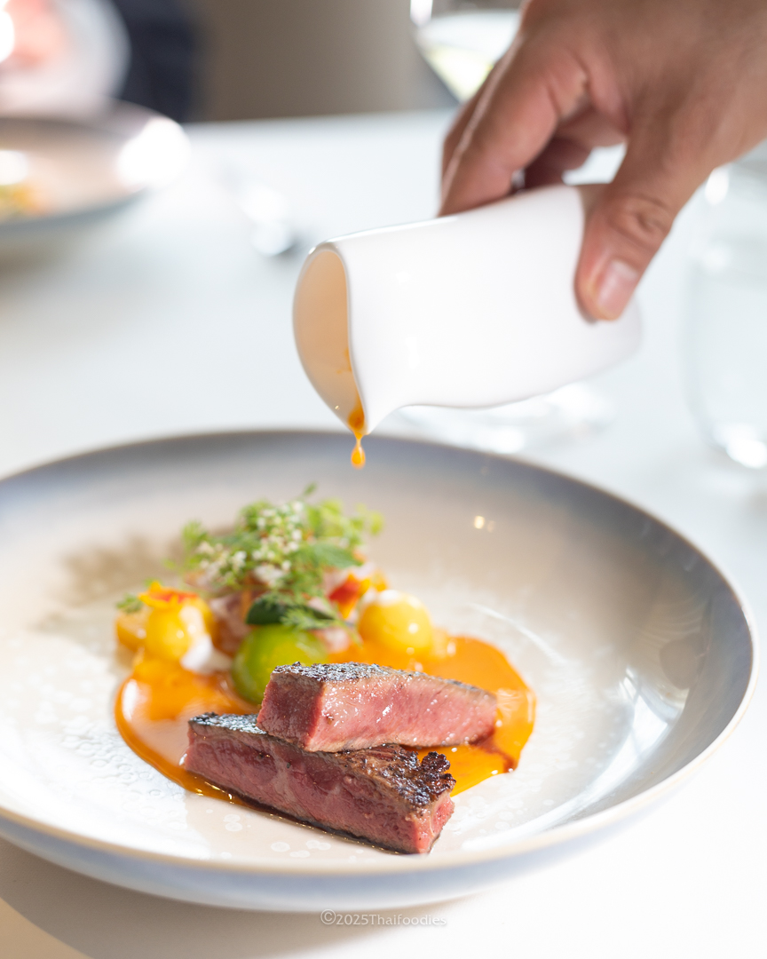 - Beef Salad with Grapes and Mango – Australian Wagyu grilled medium-rare, juicy and melt-in-your-mouth. Served with a vibrant, spicy dressing and balanced with sweet-sour fruit accents — truly unforgettable