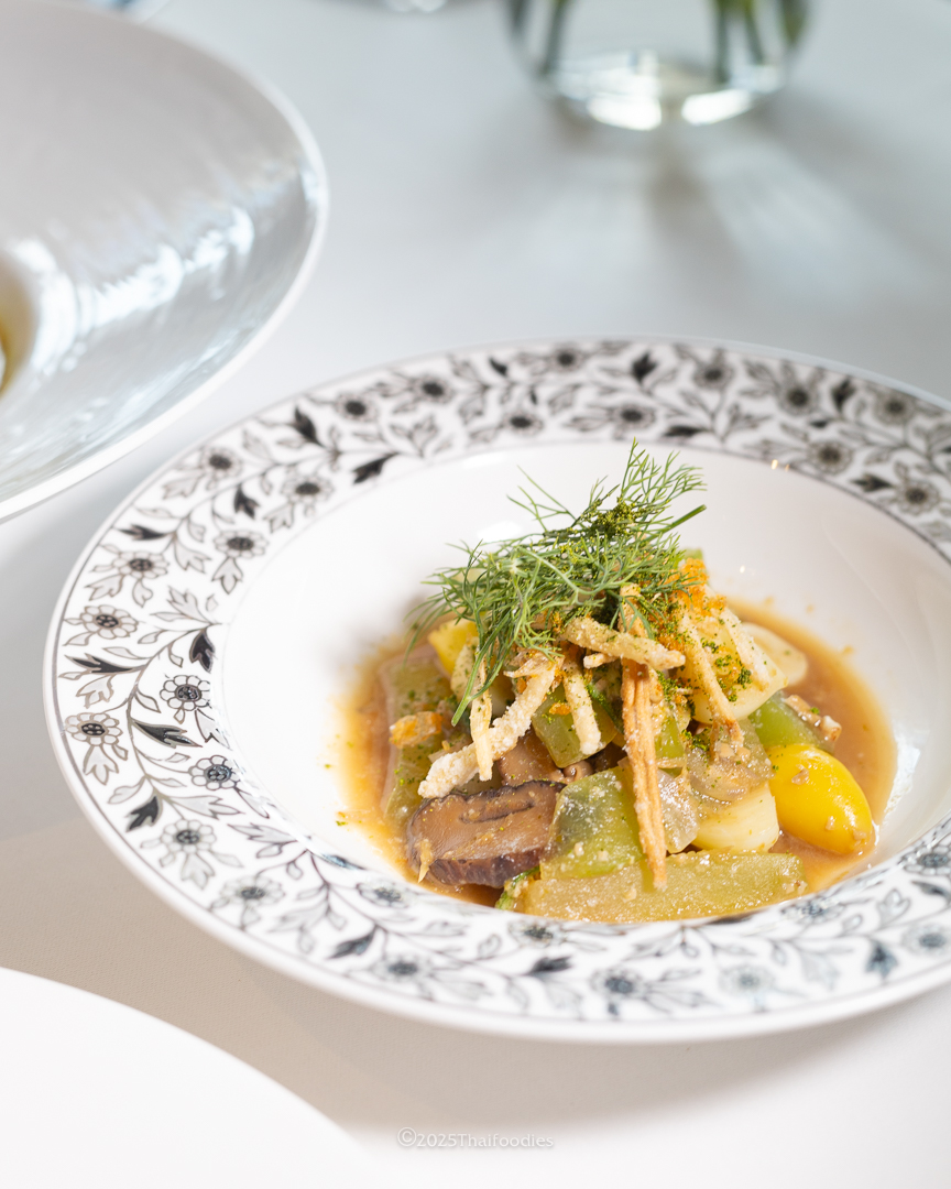 - Tom Yum with Jackfruit Seeds and Ancient Pork Leg – a clear broth Tom Yum, subtle yet full-bodied. Tender pork leg is slow-cooked and paired with grilled shallots and jackfruit seeds for a distinctly Thai touch