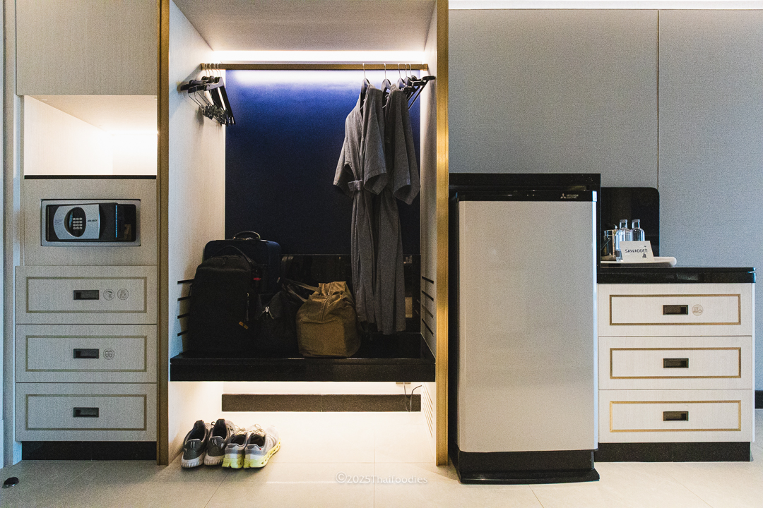 Amenities & The room features a spacious refrigerator that keeps everything perfectly chilled, along with a minibar stocked with snacks, tea, coffee, and bottled water. A hot-water dispenser is also provided for your preferred drinks. Thoughtful details continue with an in-room ice bucket — ice is conveniently available from machines on every floor. You’ll even find a vending machine for extra snacks and drinks.