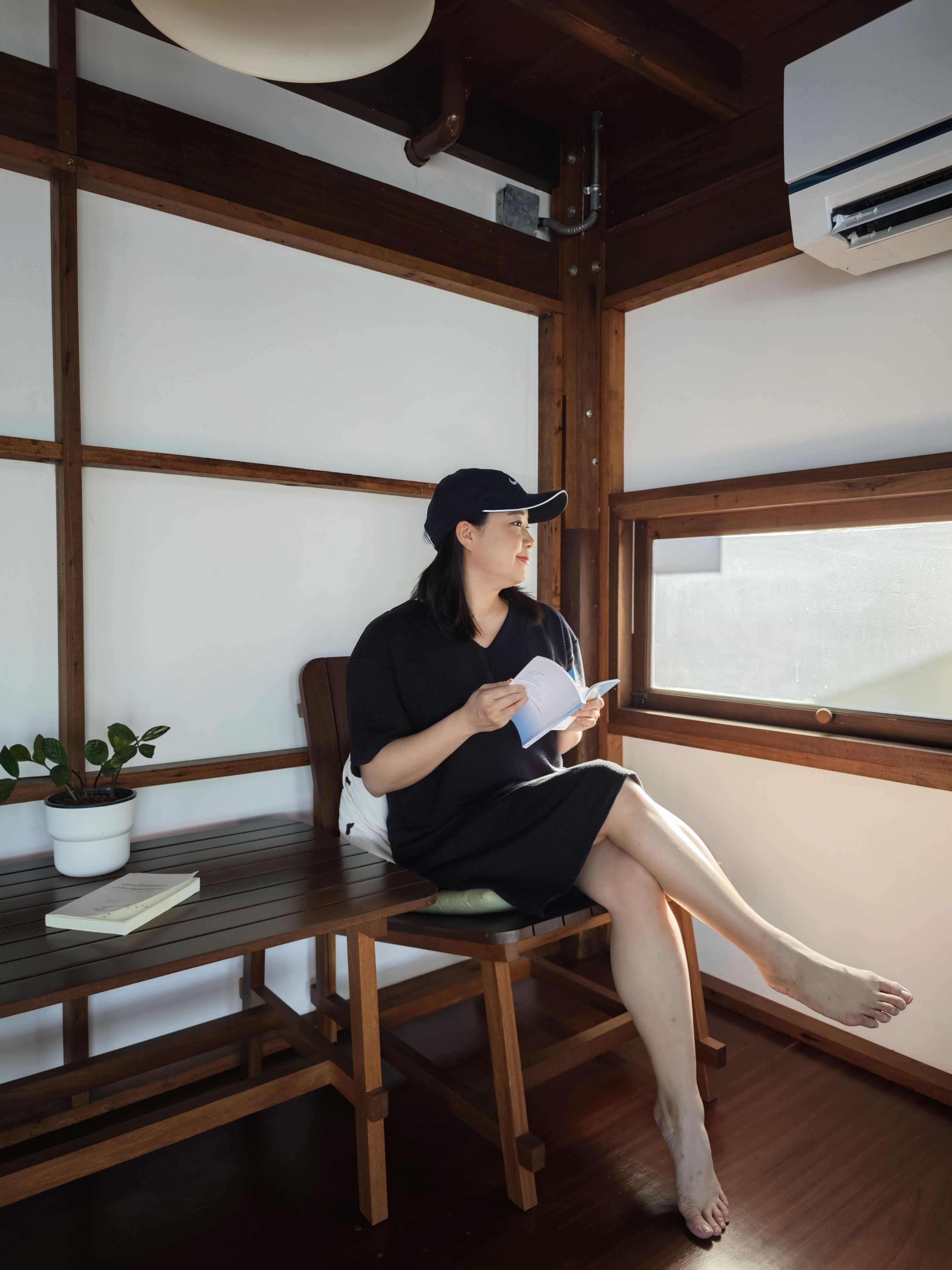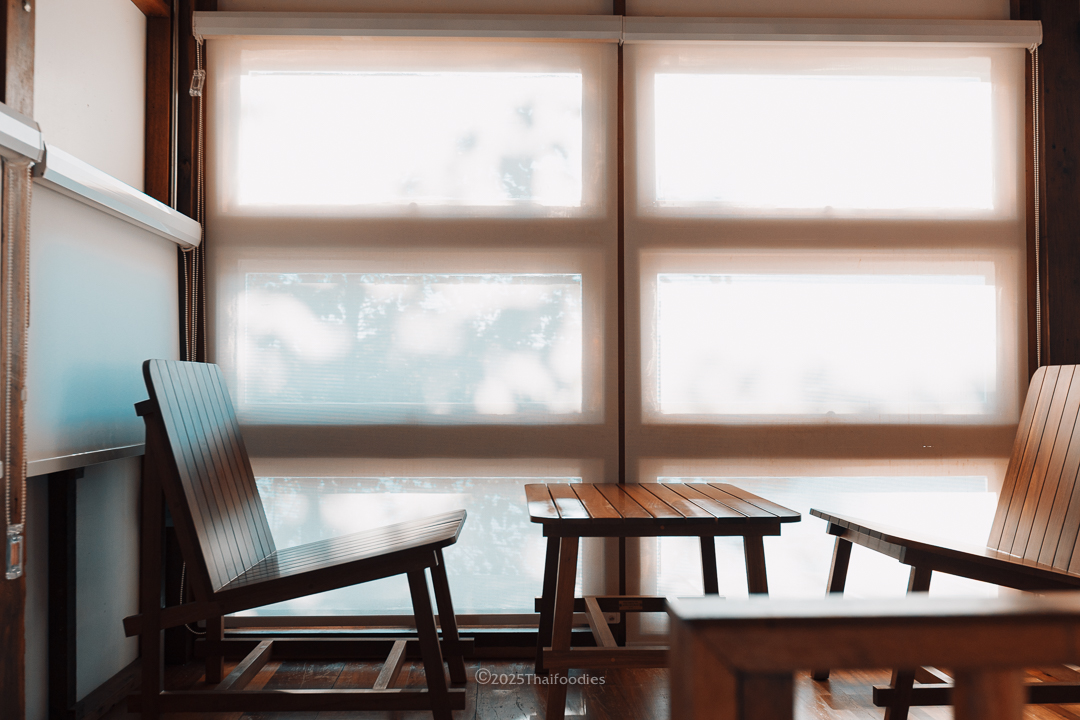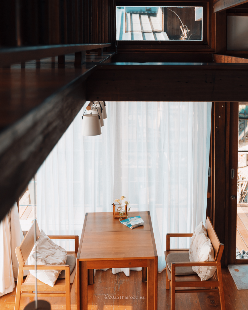 The front of the property hosts a charming, two-story minimalist café. It’s the perfect spot to unwind, offering comfortable seating with river views while you sip on expertly prepared coffee or ceremonial-grade matcha. The owners have curated a fine collection of books for guests to enjoy with their beverage.