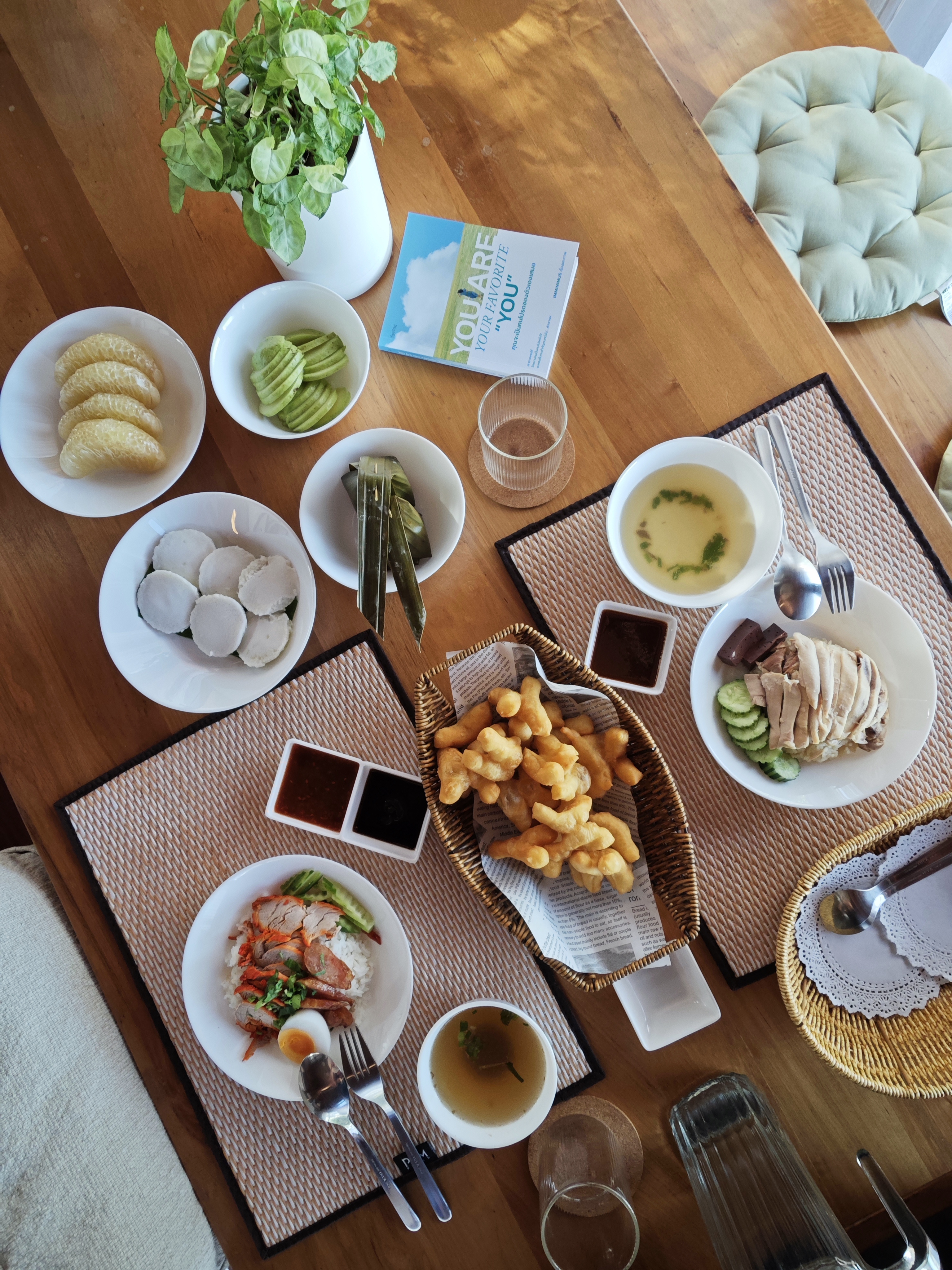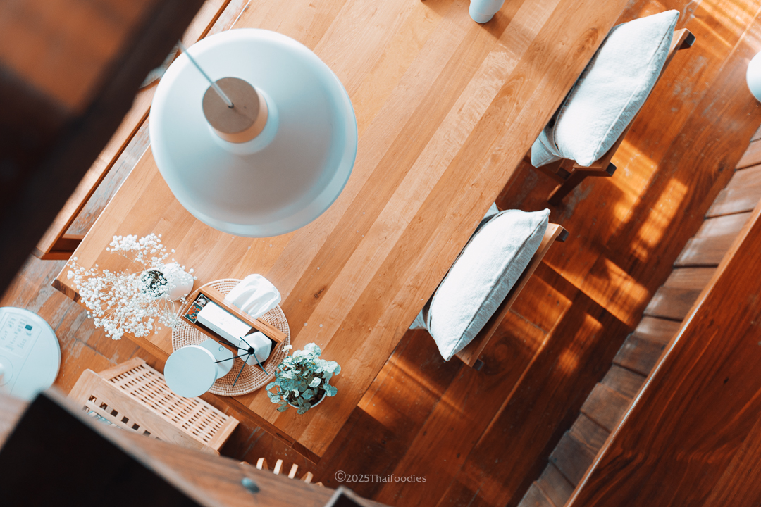 Breakfast: Choose from delicious Thai favorites like Chicken Rice (Khao Man Gai), Red Pork with Rice (Khao Moo Daeng), or rice porridge (Joke/Khao Tom). This is served alongside homegrown garden fruits such as Khao Tangkwa pomelo and Kimju guava, plus a selection of traditional Thai desserts.