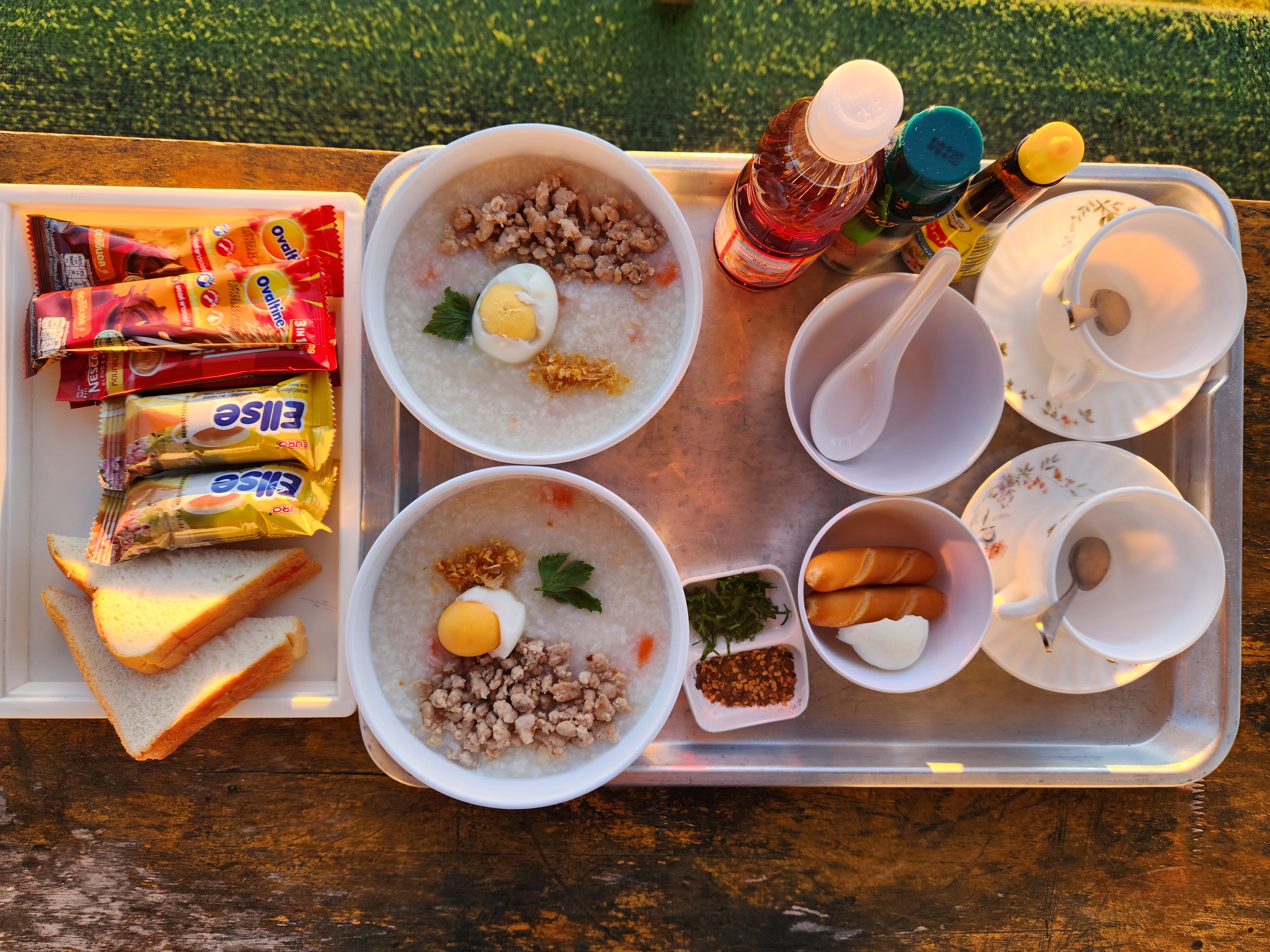 The Morning Glow:Wake up to the crisp, cool mountain air and a stunning sunrise. Breakfast is a cozy affair featuring hot rice porridge (Khao Tom), fried eggs, toast, hot chocolate, and coffee—best enjoyed while watching the morning mist crawl over the mountain ranges.