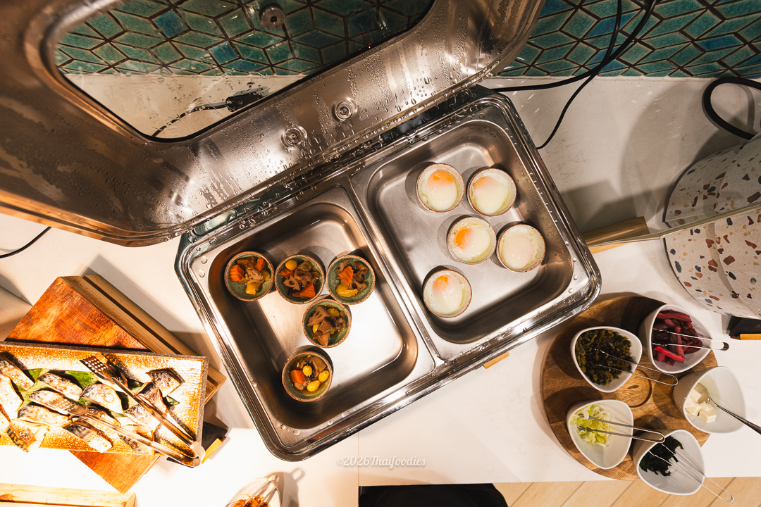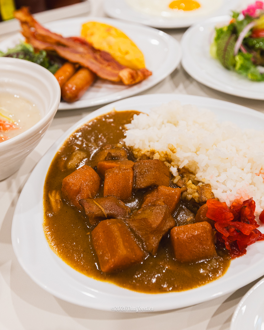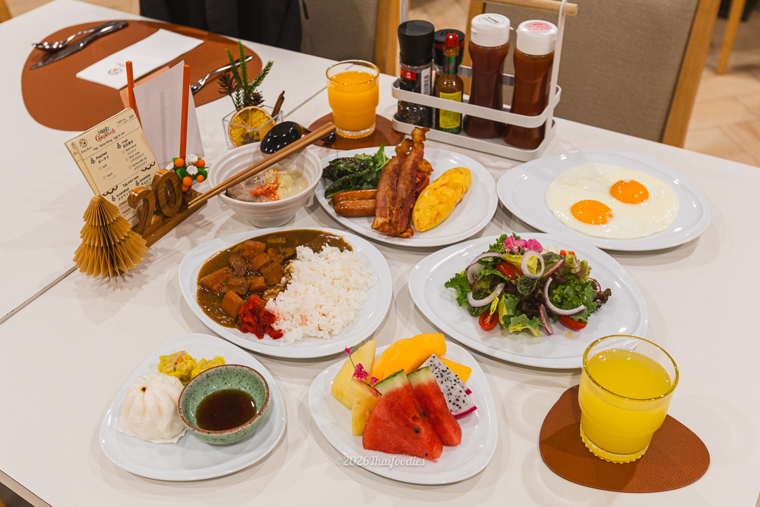 The breakfast here is a true standout, featuring a mix of traditional Japanese delicacies and flavorful Thai dishes. Don't miss the Fukuoka-style Ramen, authentic Curry Rice, and Grilled Saba, paired perfectly with UCC Coffee.