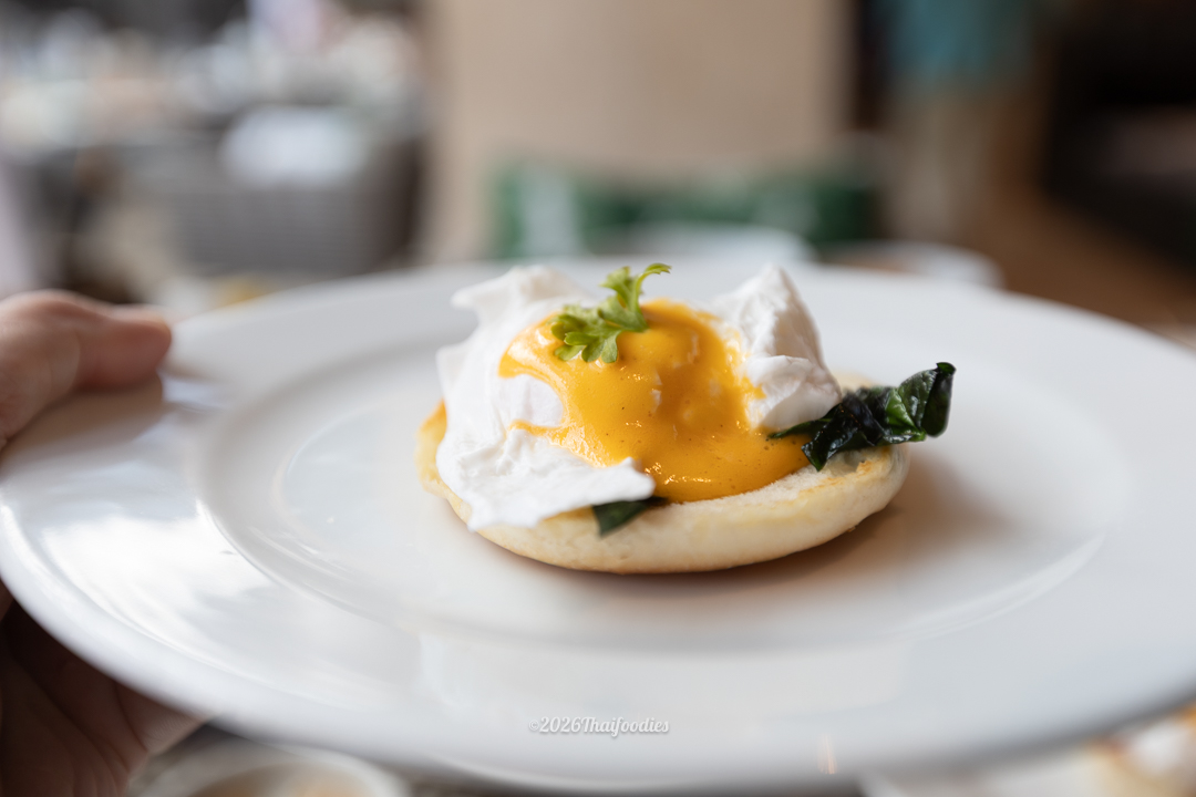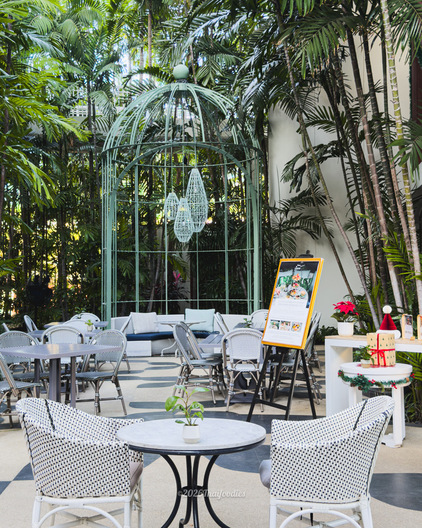 Served amidst the tranquil Pirom Garden, the signature "Golden Bird’s Cage" tea set is a masterpiece of presentation. Guests can indulge in a sophisticated selection of savory crab and premium ham bites, delicate macarons, and warm scones served with clotted cream—all perfectly paired with aromatic TWG Tea.