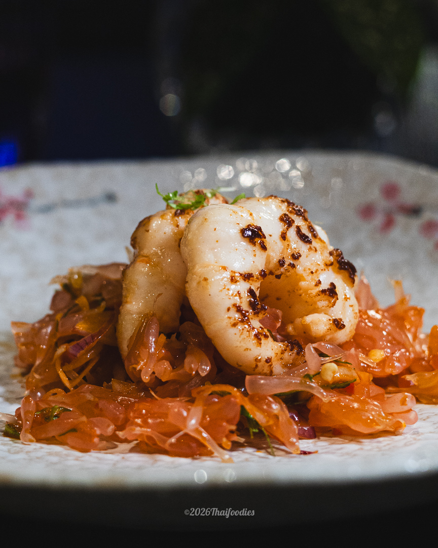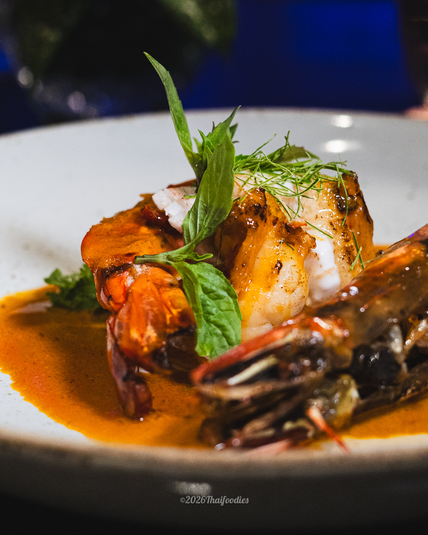 - Char-Grilled Tiger Prawns: Infused with a deep, smoky aroma from coconut husks and served with a decadent Chu Chee curry sauce.