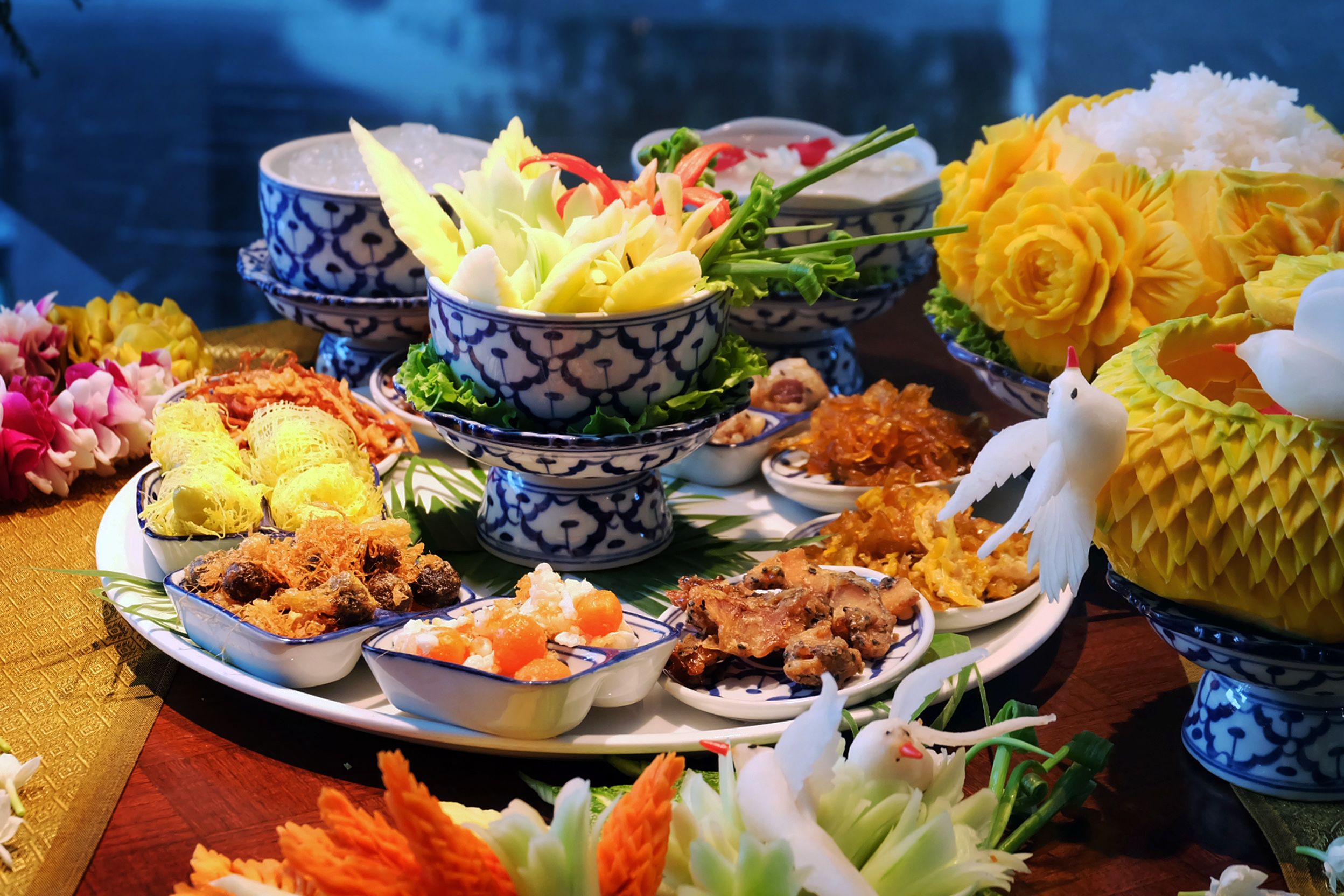 Feel the taste of rice soaked in jasmine water served with flavorful side dishes such as Deep-fried shrimp paste balls, Stir fired sweet snake-head fish, Stir fired sweet Chinese radish, Stir fired Chinese radish with egg, Shredded sweetened beef, Shredded sweetened pork, Breaded shallot stuffed with fish, Sweet pepper stuffed with pork and shrimp and Salted egg. Come and enjoy our home made supremely memorable royal dish at Sala Thai restaurant, during 10th – 18th April 2019, available daily for lunch 11.30 – 14.30 hrs. Price is at THB 780 net. Secure your place before 8th April and enjoy 10% OFF!