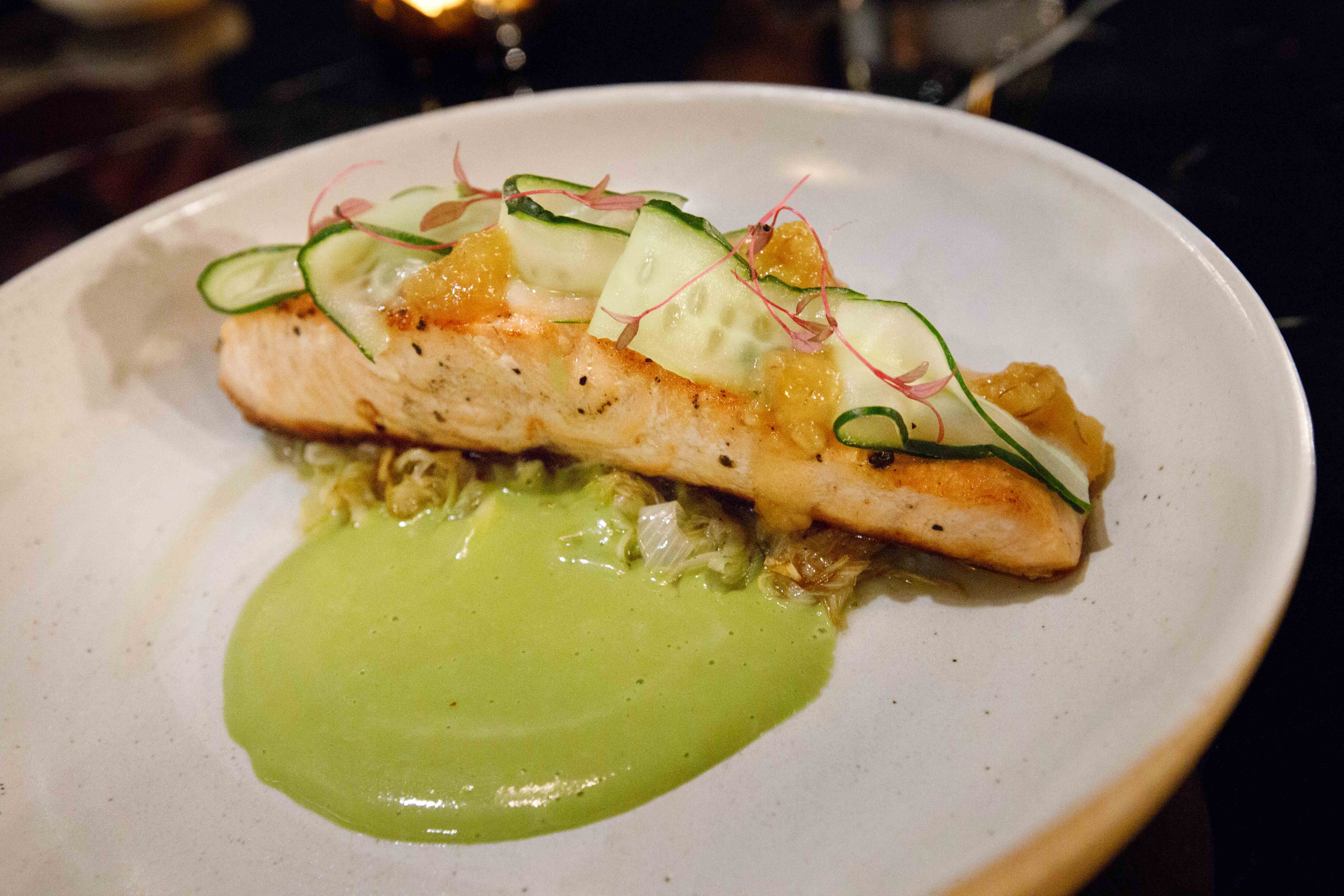 A Must Try >> "Seared Salmon" with Matcha sauce served with Japanese leek. Fresh juicy salmon good taste with Matcha sauce. be sure to try the"Wagyu Beef Sukiyaki" tender Japanese beef with nice touch of full flavor soup.