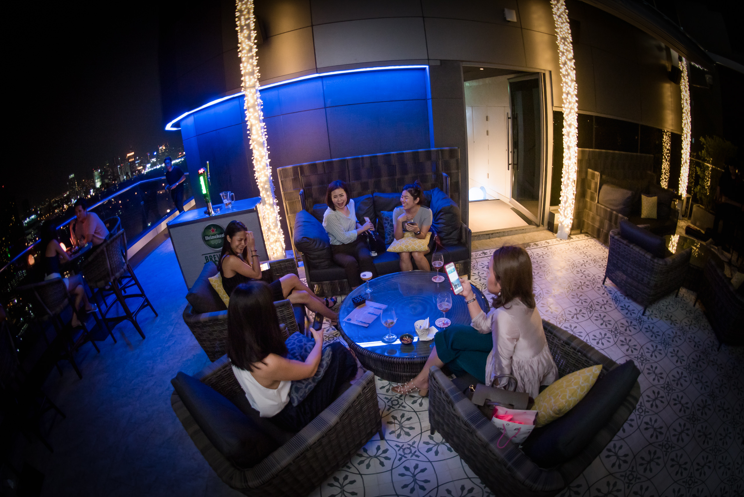 Enjoy with your group of friends every last Wednesday of the month all the girls and girls at heart will get a free 1 glass of Mojito or Cosmopolitan, and buy a next glass start only 100 thb, with a free finger food Meatball, Chicken satay, Pomelo salad and French fries! Nice atmosphere of rooftop with city view. Tune full live band at Hyatt Place Bangkok Sukhumvit 24 (Aire bar 28th floor)