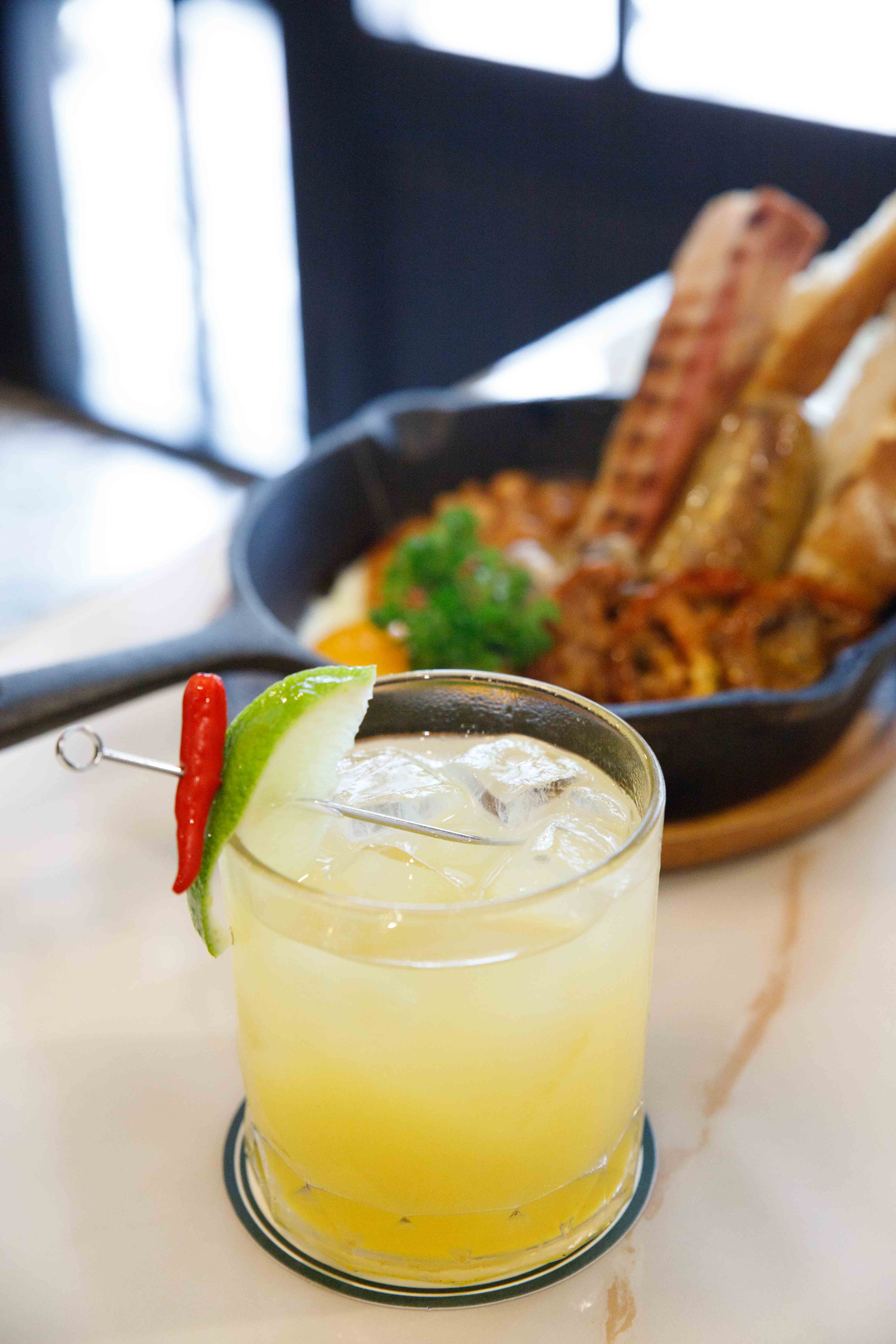 Boozy Brunch set : (special set menu only available on Saturdays and Sundays) Two sunny side up eggs served with Italian sausage, thick cute juicy bacon, baked beans, mix sauté mushrooms with roasted tomato & toasted bread! This value set is only 650 THB net. You can also choose 1 choice of cocktail with your set - I ordered "Mango Margarita" a refreshing sweet and sour cocktail with a little spiciness!