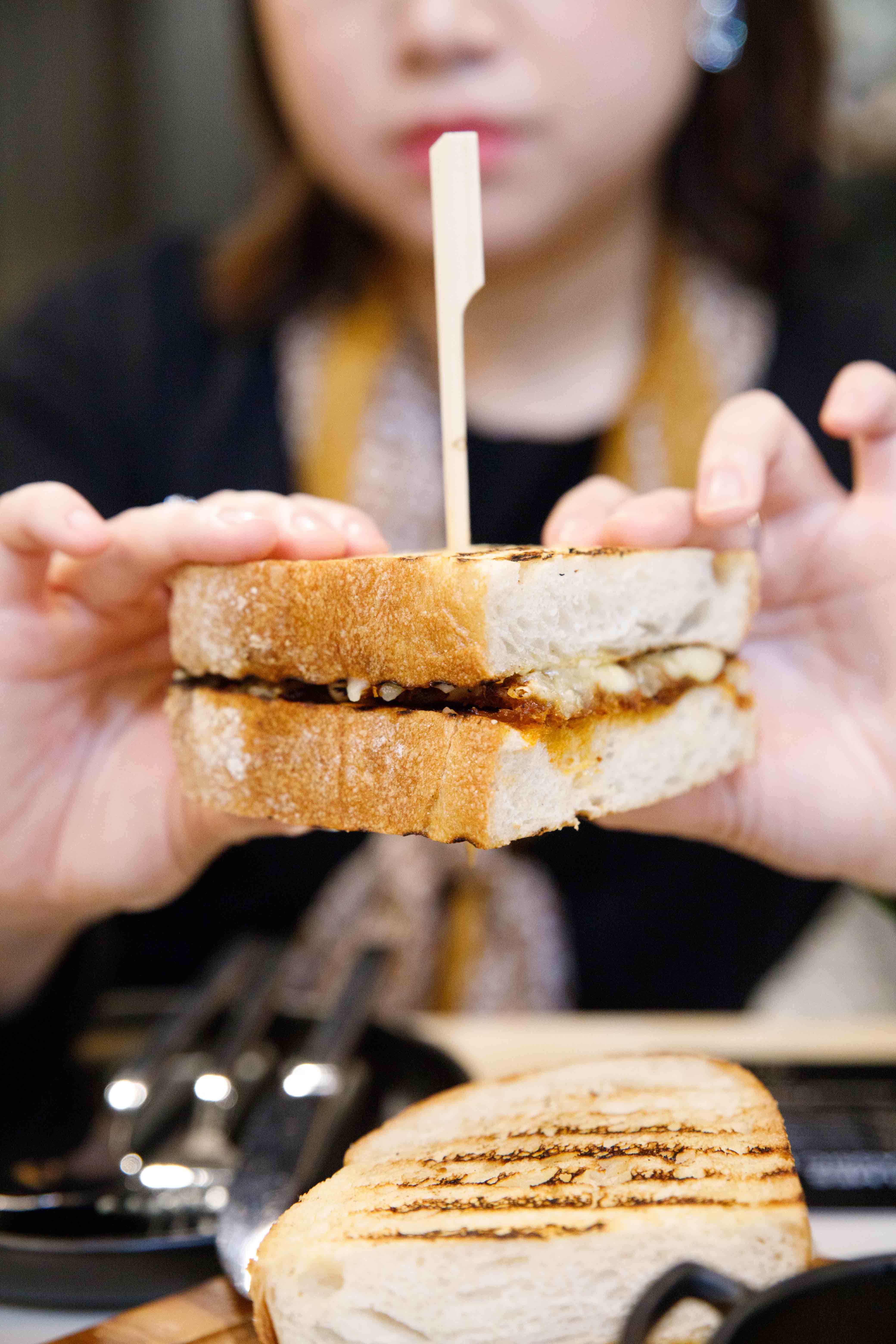 The pulled pork grilled cheese sandwich is made with soft homemade toasted bread stuffed with a perfectly cooked macerate pulled pork smothered in barbecue sauce and cheese.