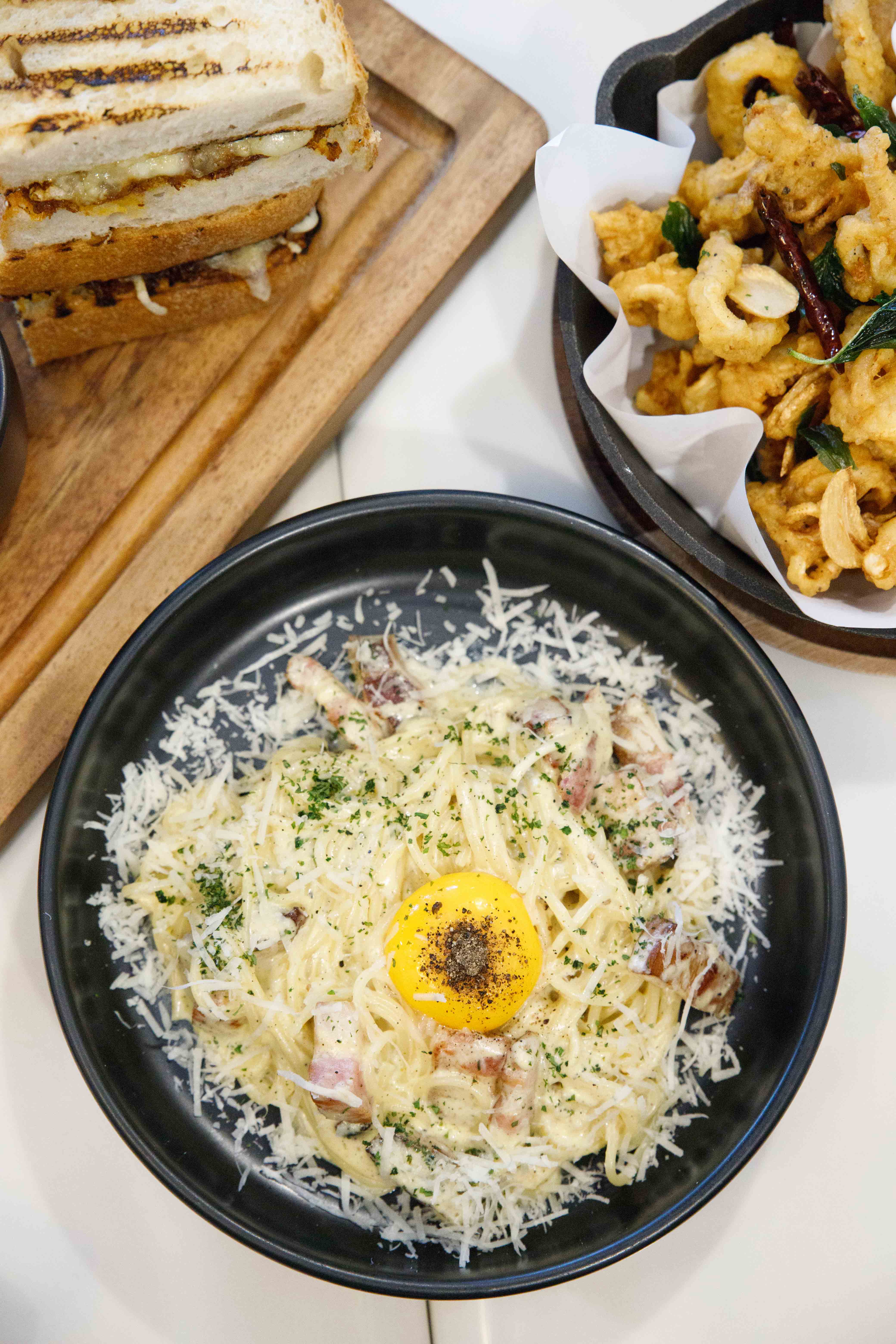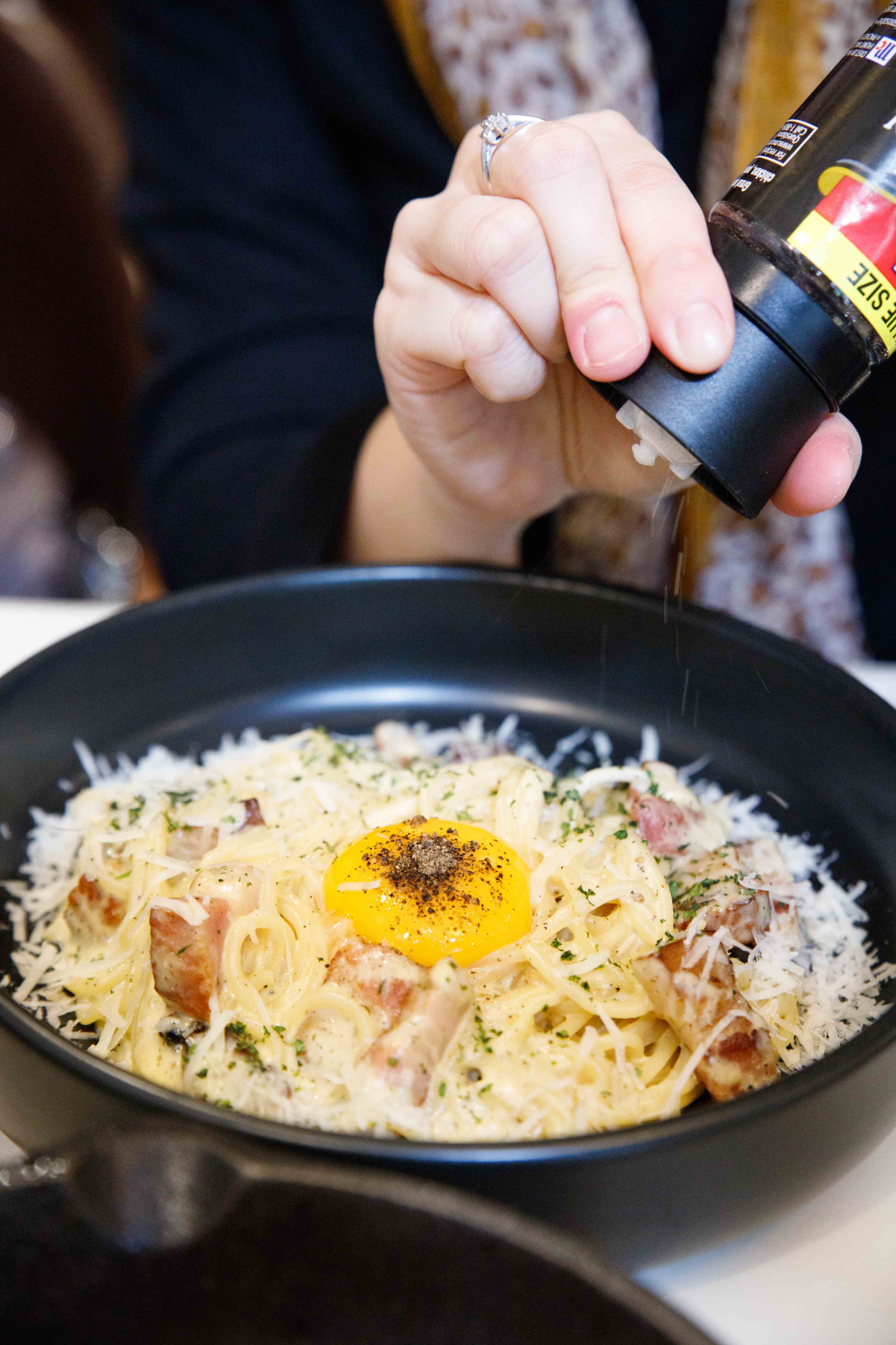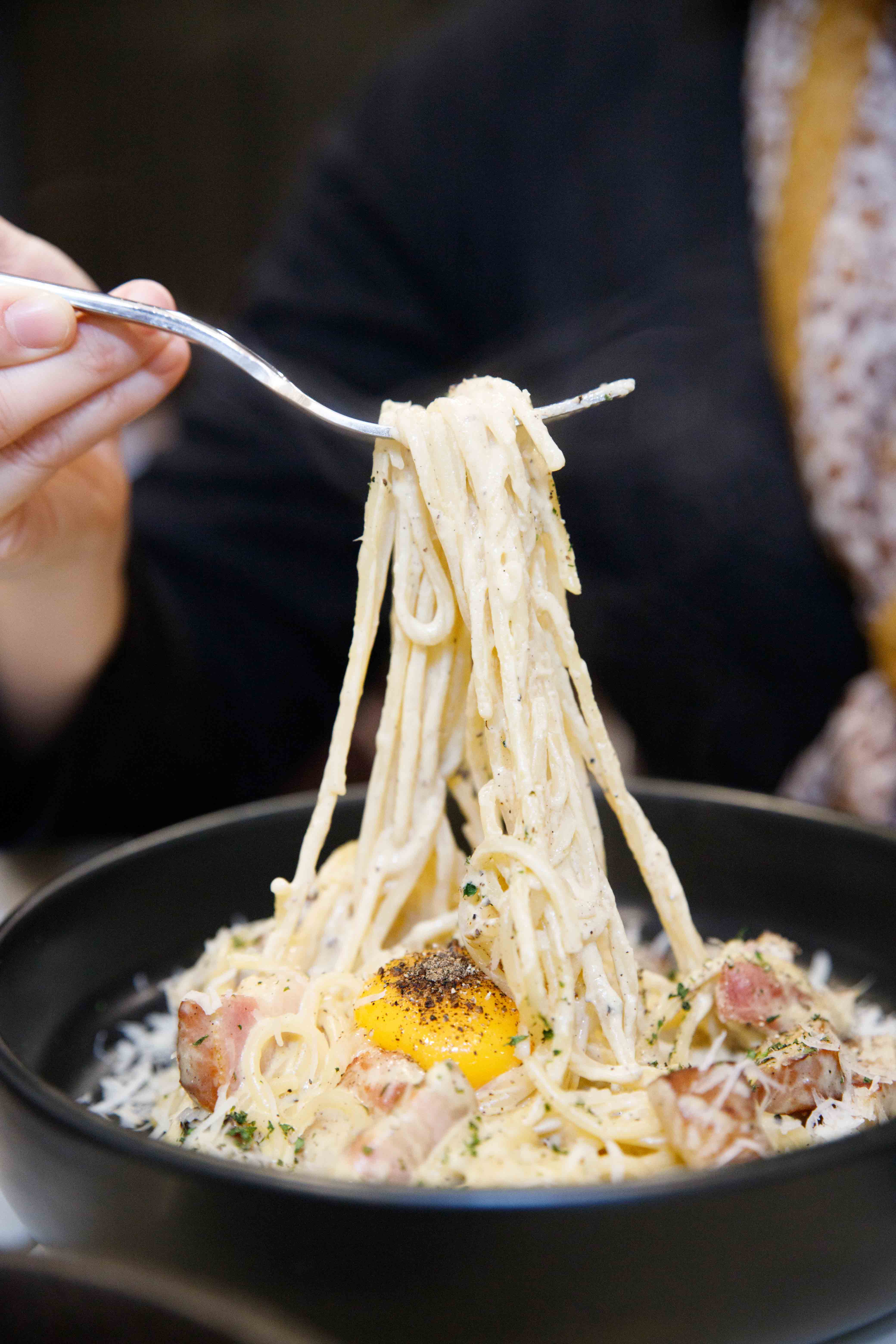The spaghetti creamy cabonara with bacon pancetta was next up - Al dente spaghetti stir fried with Italian bacon pancetta produces a mild & creamy taste topped with an egg yolk, parmesan & mozzarella cheese perfect when topped with a bit of black pepper!