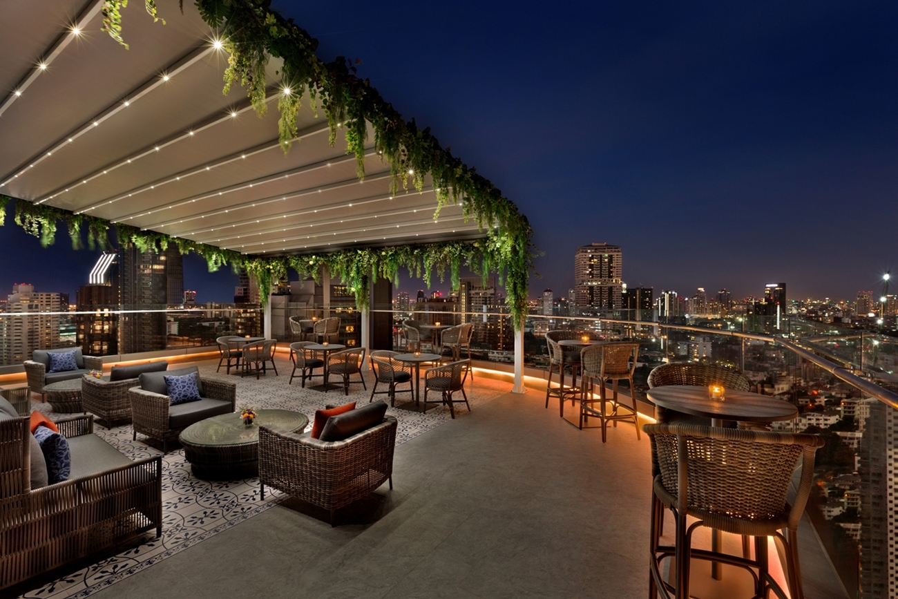 This fresh and breezy hotspot is located high in the sky on 28 floor of Hyatt Place Bangkok Sukhumvit. Situated in the vibrant Phrom Phong area, you can enjoy a lounge-style, relaxed atmosphere with the vibe of R 'n' B, electronic, hip hop and house music, as well as live music every Friday and Saturday nights. AIRE BAR is a great sky bar for any occasions that you can unwind in a casual atmosphere and escape from the chaos of Bangkok amidst 180° views of the city skyline; with two large terraces, connected to two indoor lounges; and great value priced drinks! A light snacks menu, combined with the bar’s décor creates a one-of-a-kind refreshing ambience. The drinks menu includes craft beers and a unique cocktail menu curated in partnership with Nick Braun, Creative Director of Umami Hospitality, a world-renowned mixologist who has created unique and delicious cocktails.