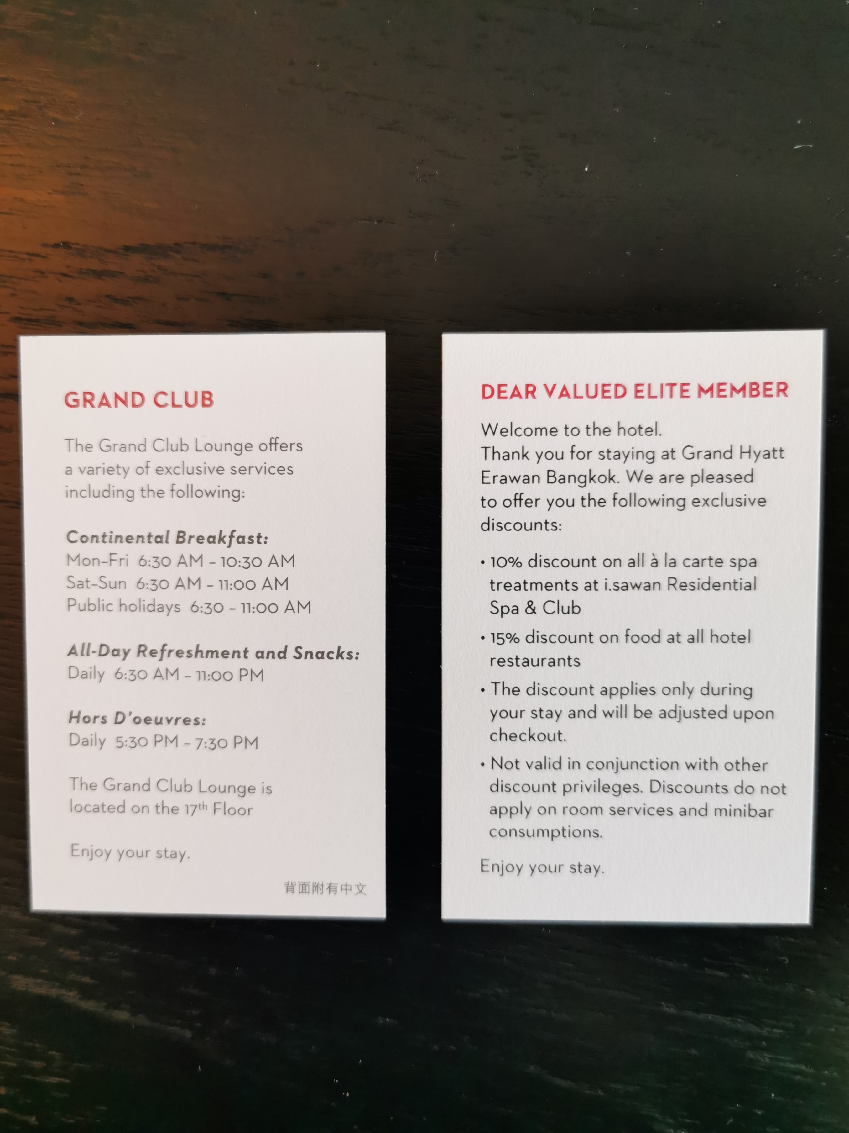 Grand Hyatt Erawan club lounge has yummy Thai food s daily like fish maw soup also available are cookies, mango, coffee, wine and beer during happy hour. Khun "Gai" and all staff are on hand to provide you with helpful and friendly service.