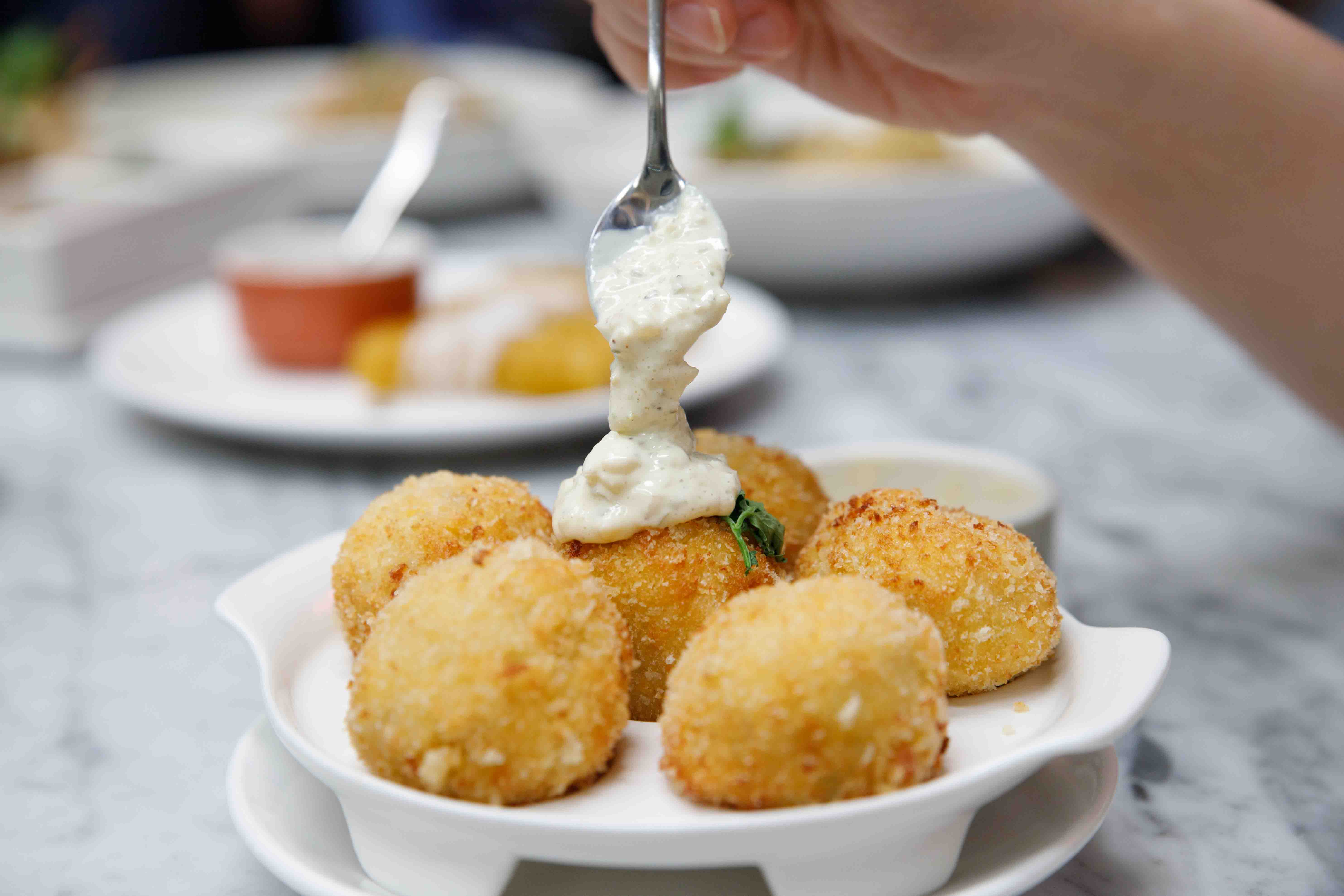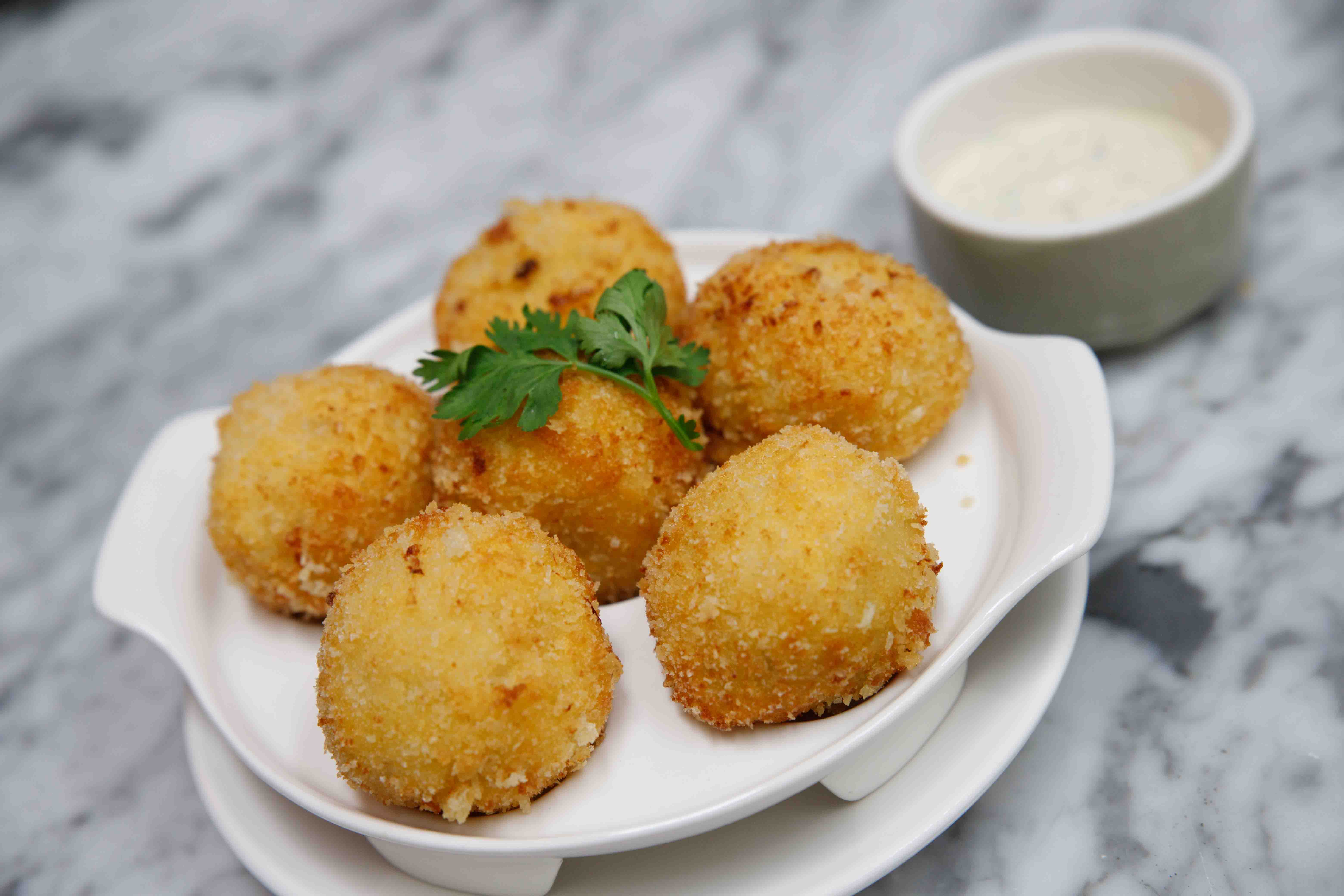 Pork satay is another recommended creation - Delectable tender grilled pork satay served with toasted bread and peanut sauce! Mouthwatering with Croquette Crabmeat balls served with tartar sauce - enjoy subtle taste of fresh crab, perfect with tartar dipping sauce.