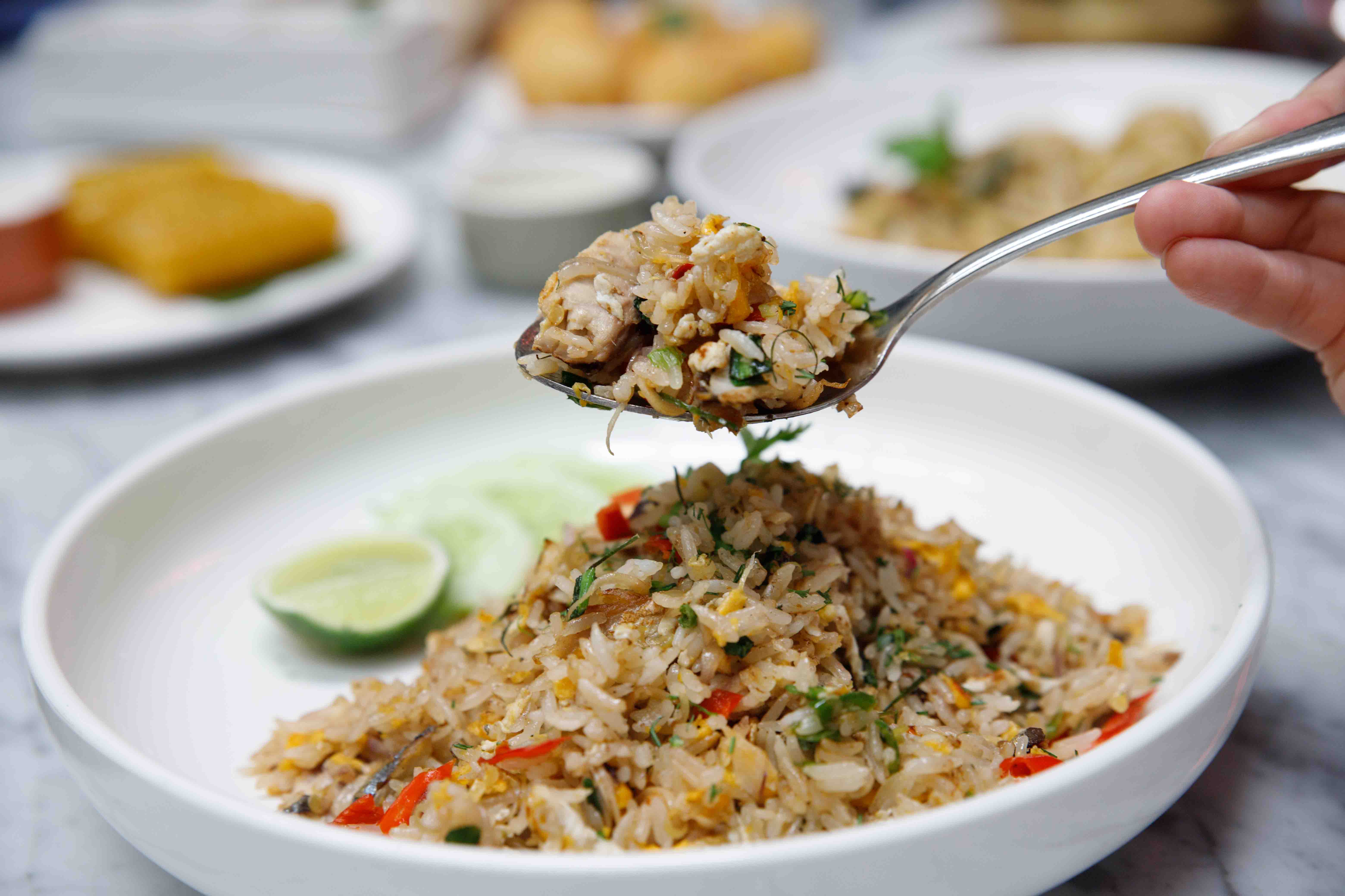 I also recommended rice stir fry with mackerel fish and herbs; fresh mackerel fish stir fried with rice, egg, red onion, chili and parsley topped up with fresh lime, A spicy, sour and salty treat that is very Thai!