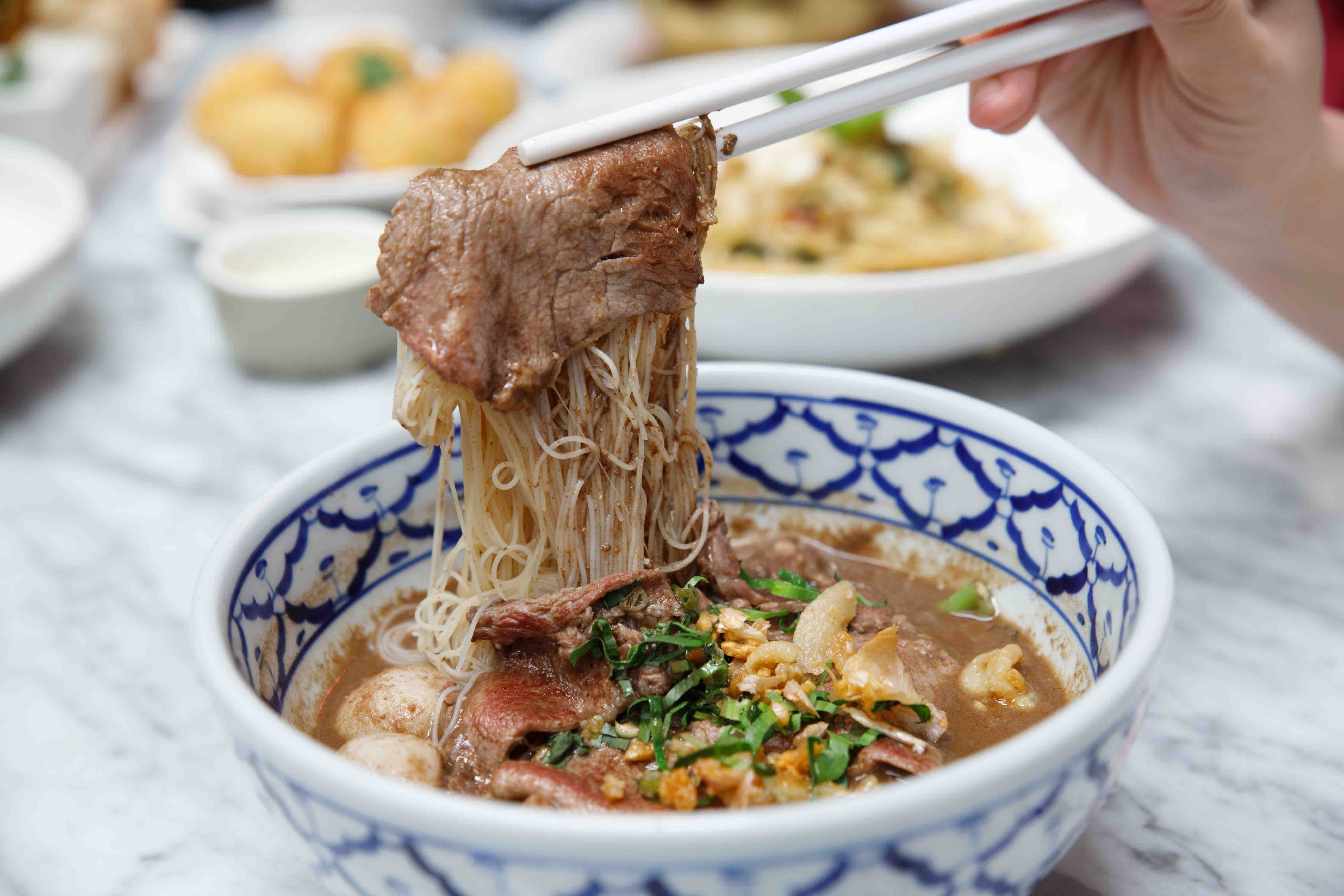 A few must try items are - Beef / Rib eye Penin Boat Noodles! Yummy full flavor soup with tender beef or you can also have Kurobuta pork Boat noodles which is also super tasty!