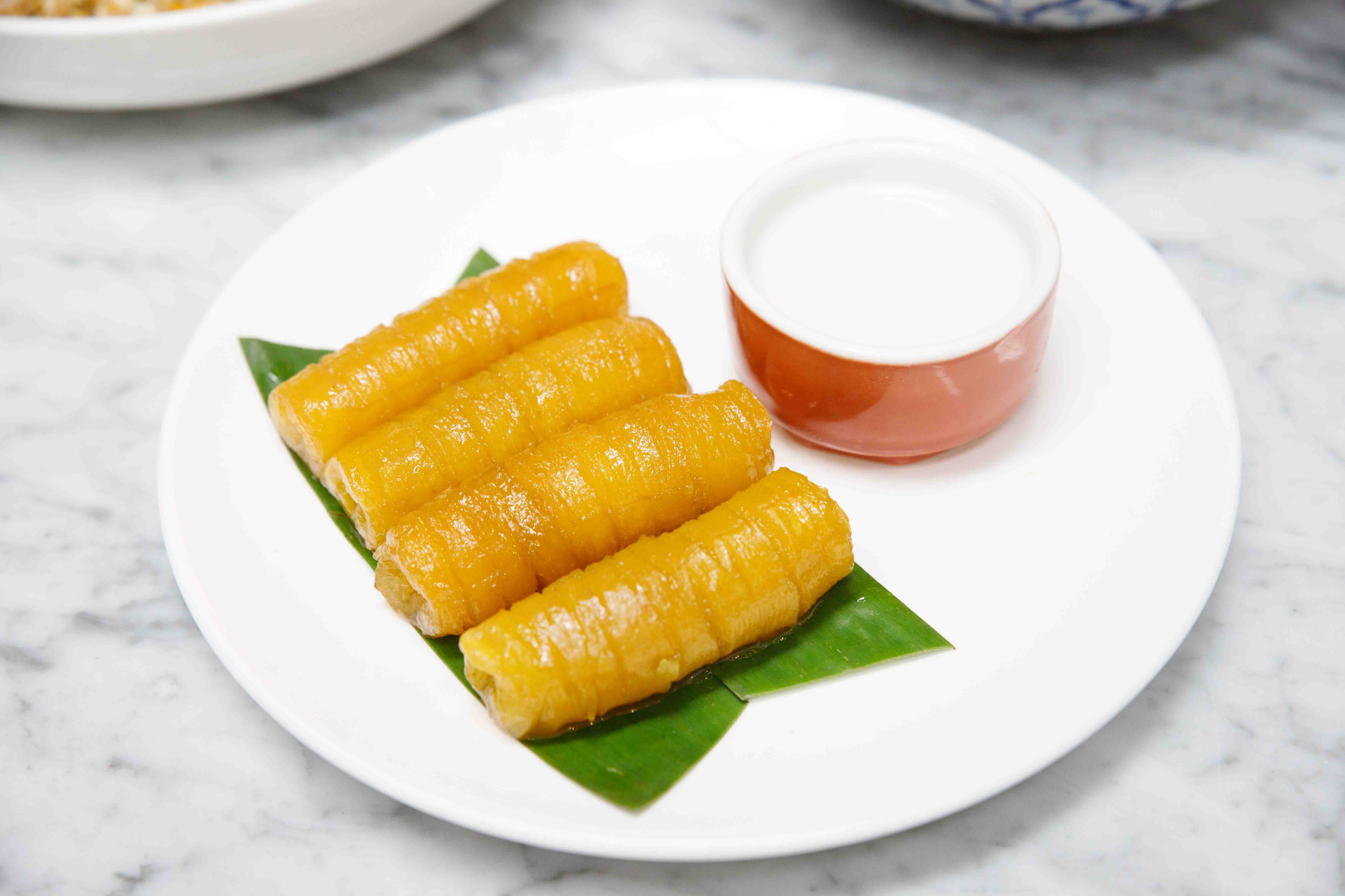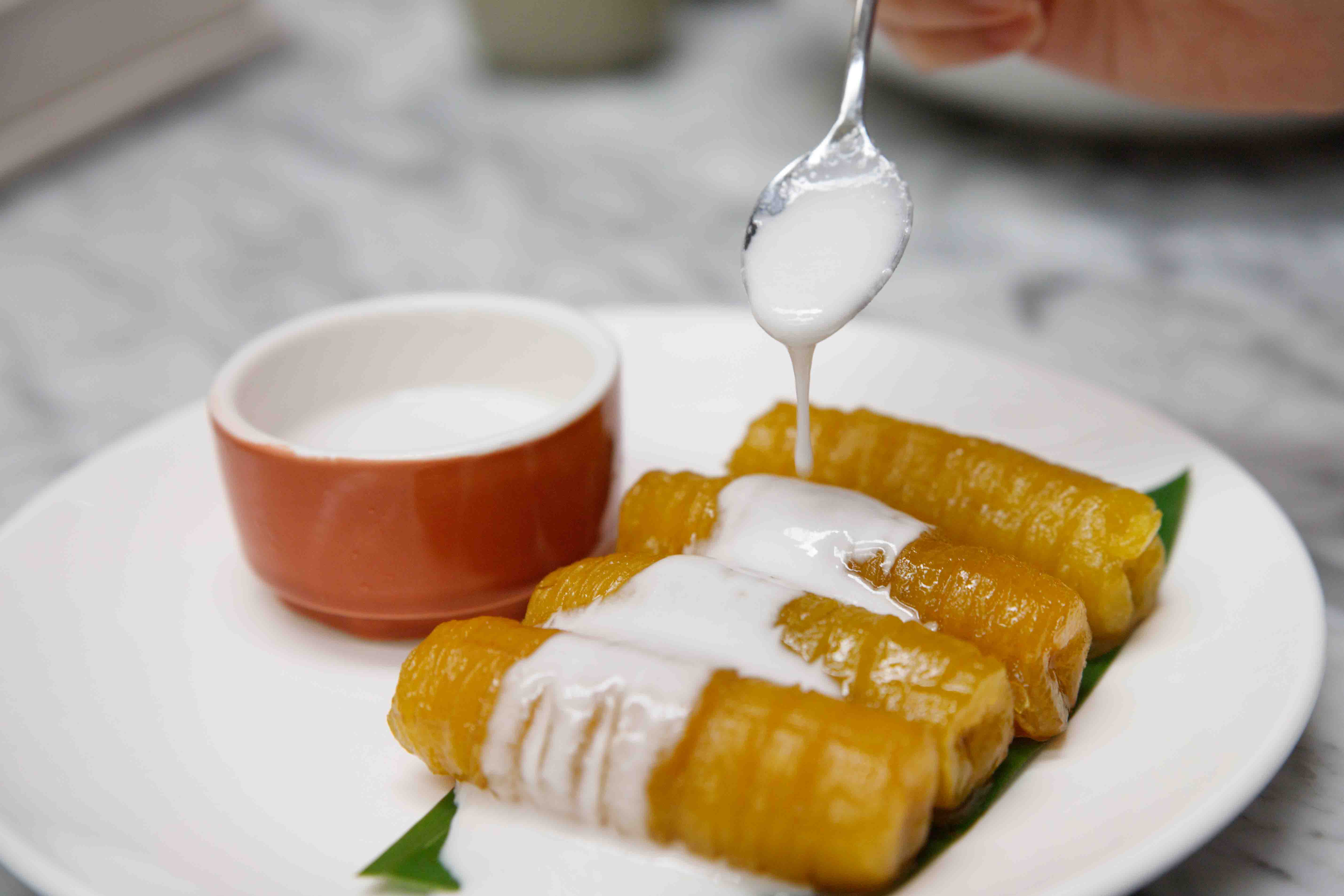 For Thai dessert must try! Banana in syrup served with coconut milk, Sweetness from banana good combine with coconut milk!