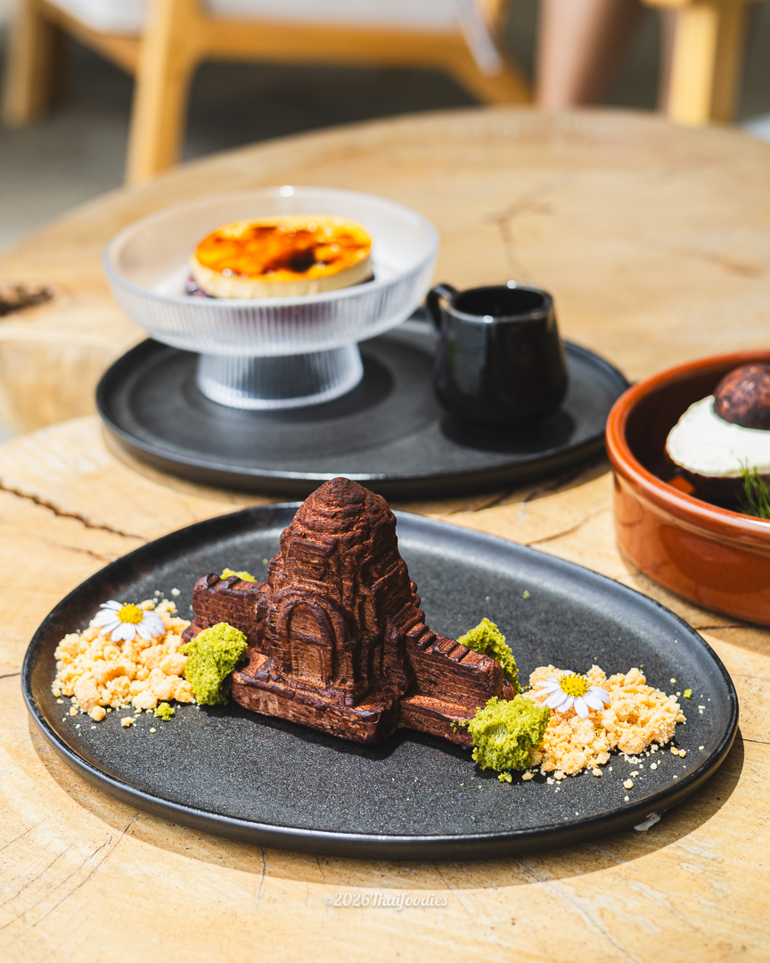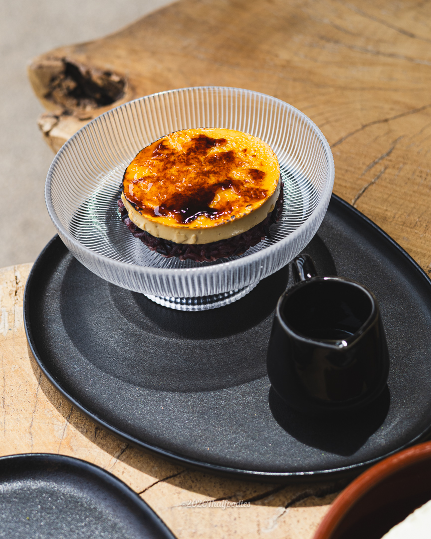 No visit to Annun is complete without indulging in our signature desserts. Our Black Sticky Rice Crème Brûlée offers a delightful crunch of caramelized cane sugar, while our Avocado Cheesecake provides a smooth, velvety finish. For a truly theatrical experience, the Prasart Namtok Ta-Phrom stands as a testament to our culinary creativity.