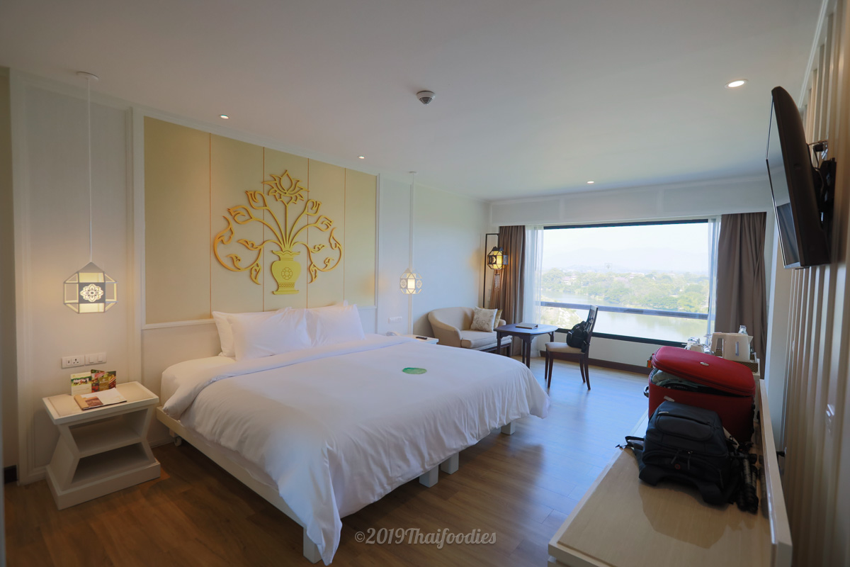 Thaifoodies stayed in a Deluxe River View room for 4,500 THB ($140). Our bedroom has a huge, with a large, comfy bed, along with a sofa and work desk that boasts a stunning view of the lazy Kok river.