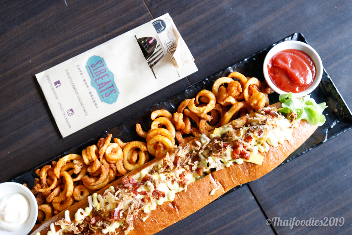 We sampled a variety of dishes at Streats including a massive 16" German Hot Dog that we simply could not finish between the two of us, a Thai-style Basil Burger that really captures true Thai taste without overloading the mouth with hotness! We also sampled some tasty bar snacks like crispy chicken wings, fried calamari and a yummy grille prawn and olive. You can't go wrong at this hip dining spot for cold drinks and yummy eats!