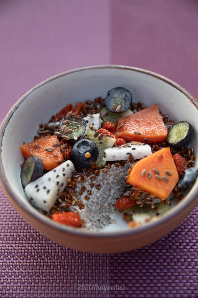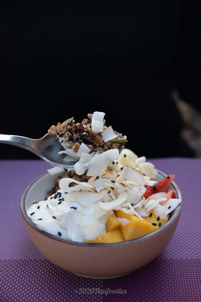 Pork Ball Boiled Rice also yummy, crushed avocado served with 2 poached eggs on toasted bread, perfect medium portion of an Energy Bowl which includes Granola, Vanilla Yogurt and fresh fruits - a healthy and refreshing start for your morning wake up! Awesome - Fresh Coffee Latte or Tea.