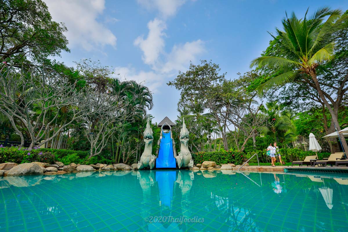Hyatt Regency Hua Hin has large interconnecting pools featuring three distinctive pool areas: river pool with a waterfall and Jacuzzi flowing into the interconnecting lagoon pool – perfect for swimming, free-form pool with 22-meter long and a 7-meter high water slide and unique beach pool for children is also available.