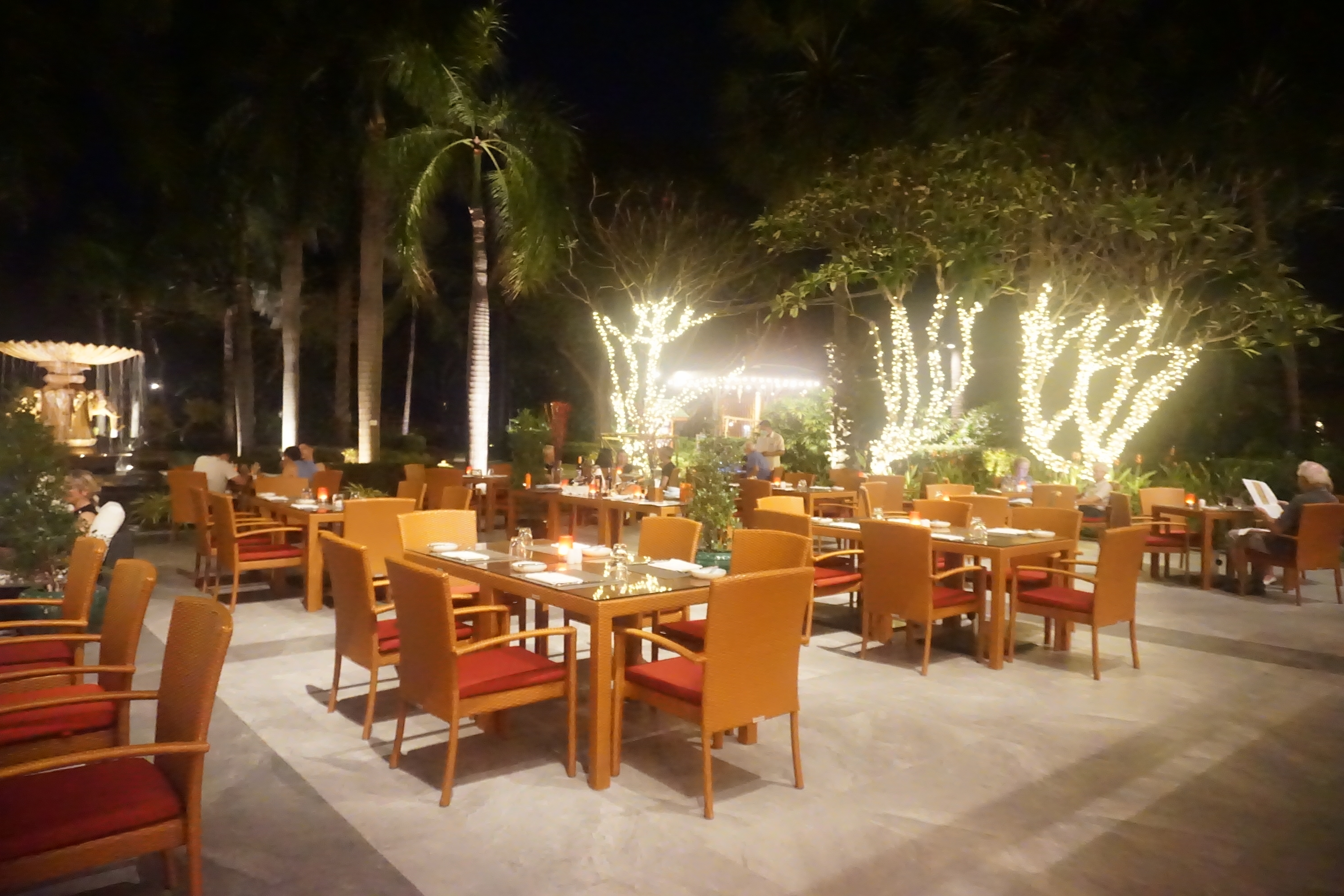 Alfresco dining is also available in the beautiful garden among towering tropical trees.