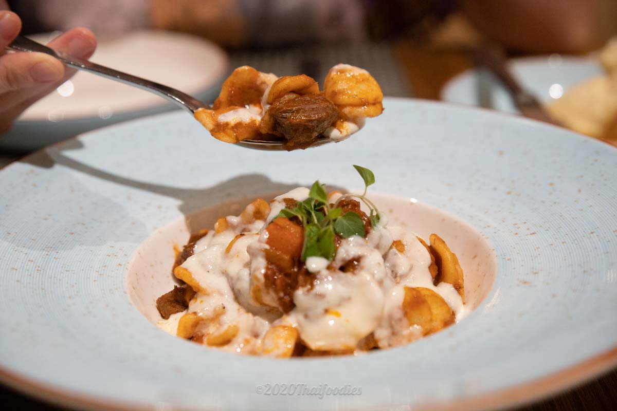 We ordered two handmade pasta dishes from the Figs menu. Orecchiette Al Ragu beef ragu stewed for over 12 hrs! Dressed with Caciocavallo warm cheese from Italy!