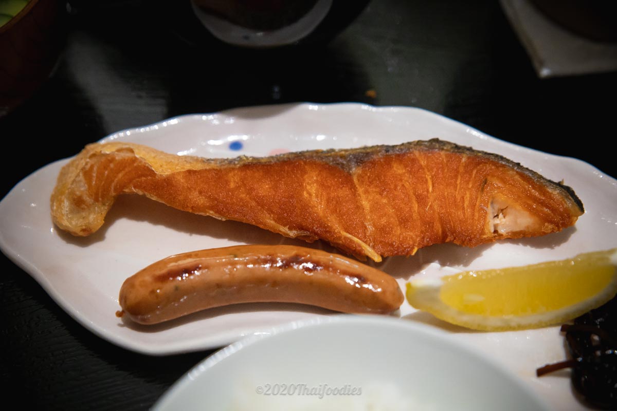 For Breakfast, The deep fried salmon is very tasty. They also serve many kinds of side dishes such as soup, hotpot, Japanese omelet, gyoza, green tea and fresh sweet melon - all you can eat breakfast!