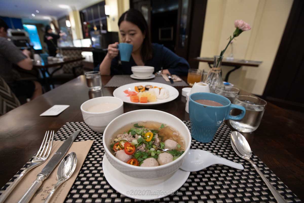 Breakfast is served from 05.30 am - 10.00 am. Must try selections include the pork noodles so delicious or the Dough stick with tofu milk. The Egg station serves up eggs to order, or a lovely Chinese bun with roasted pork, Sushi, assorted bakery items, pancakes, waffles and a good variety of Thai food. You can't go wrong!