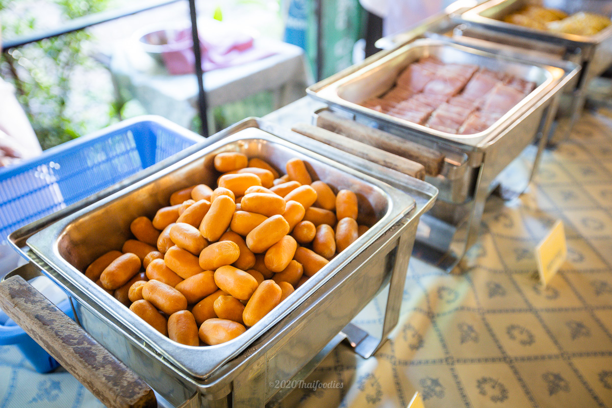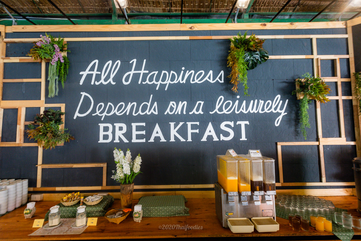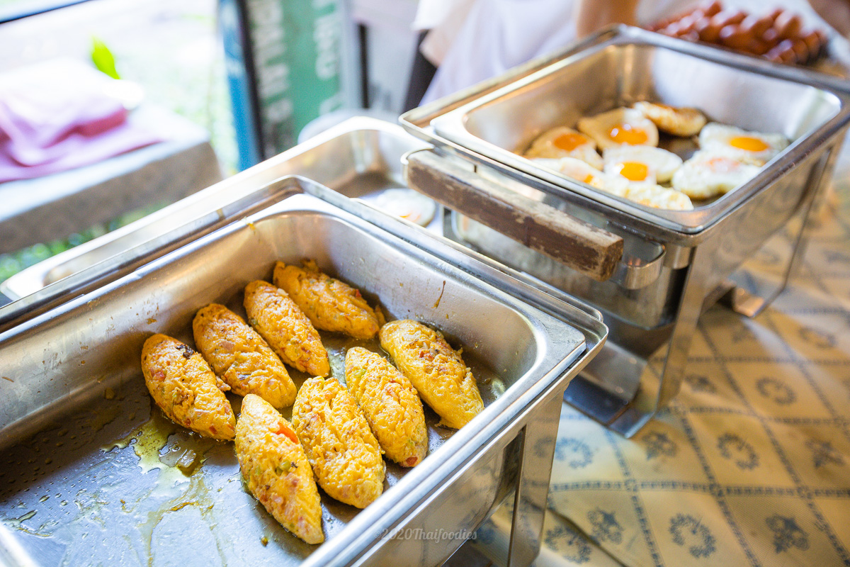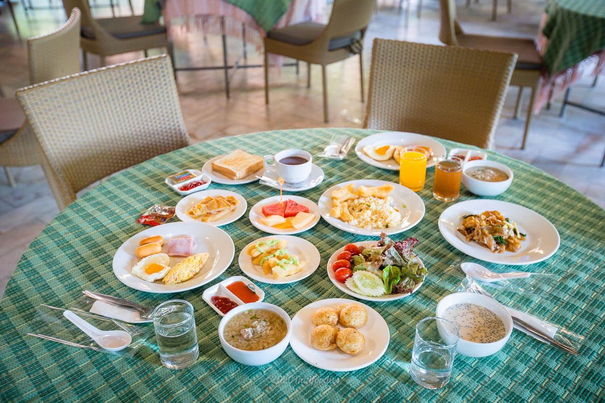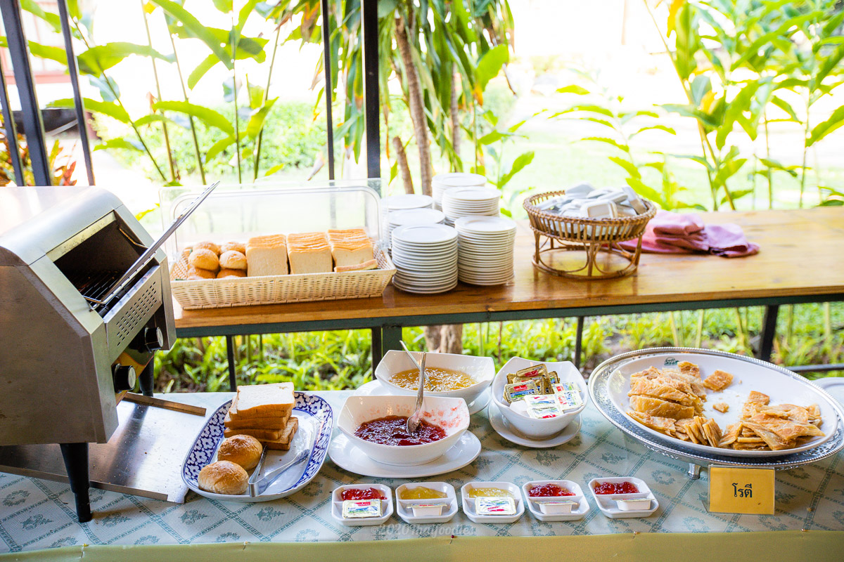 For Breakfast Supalai Pasak resort and spa has a buffet full course, an egg station, ham, sausage, and a wide selection of Thai food. Soy milk served along with a Thai dough stick, coconut rice cake, roti, porridge, coffee, and tea.