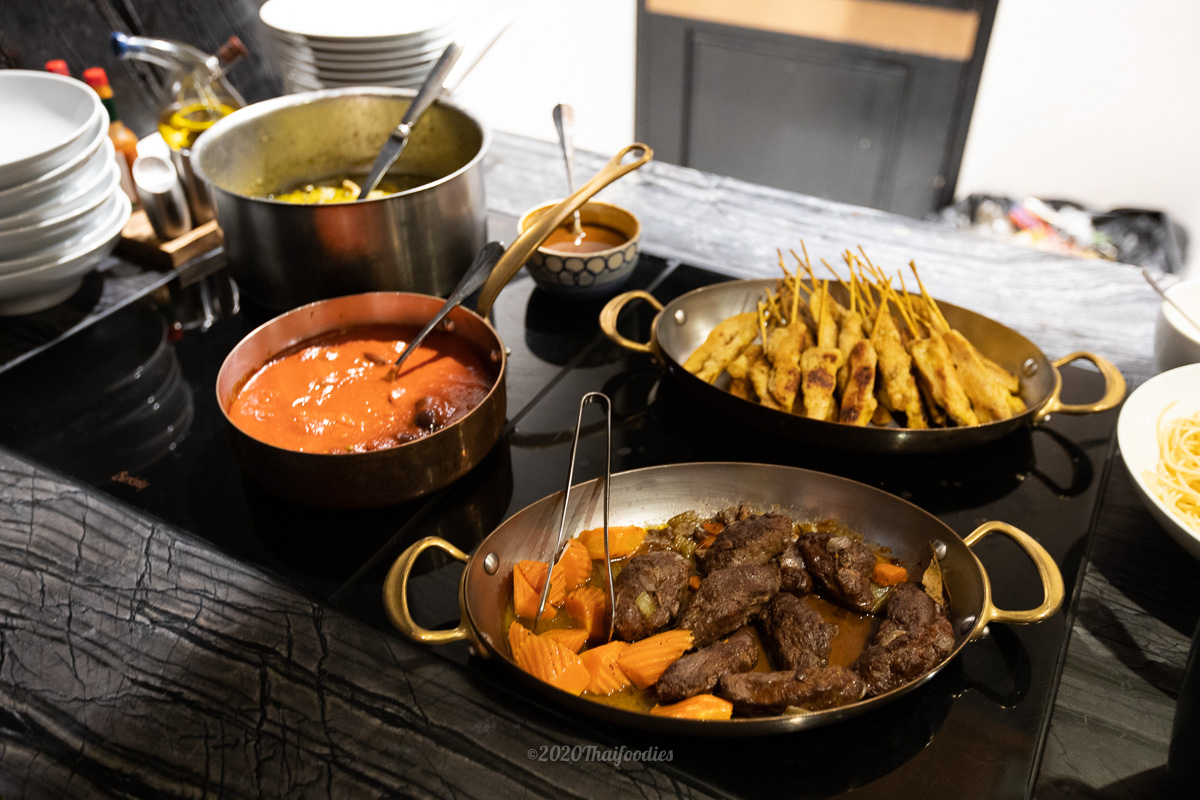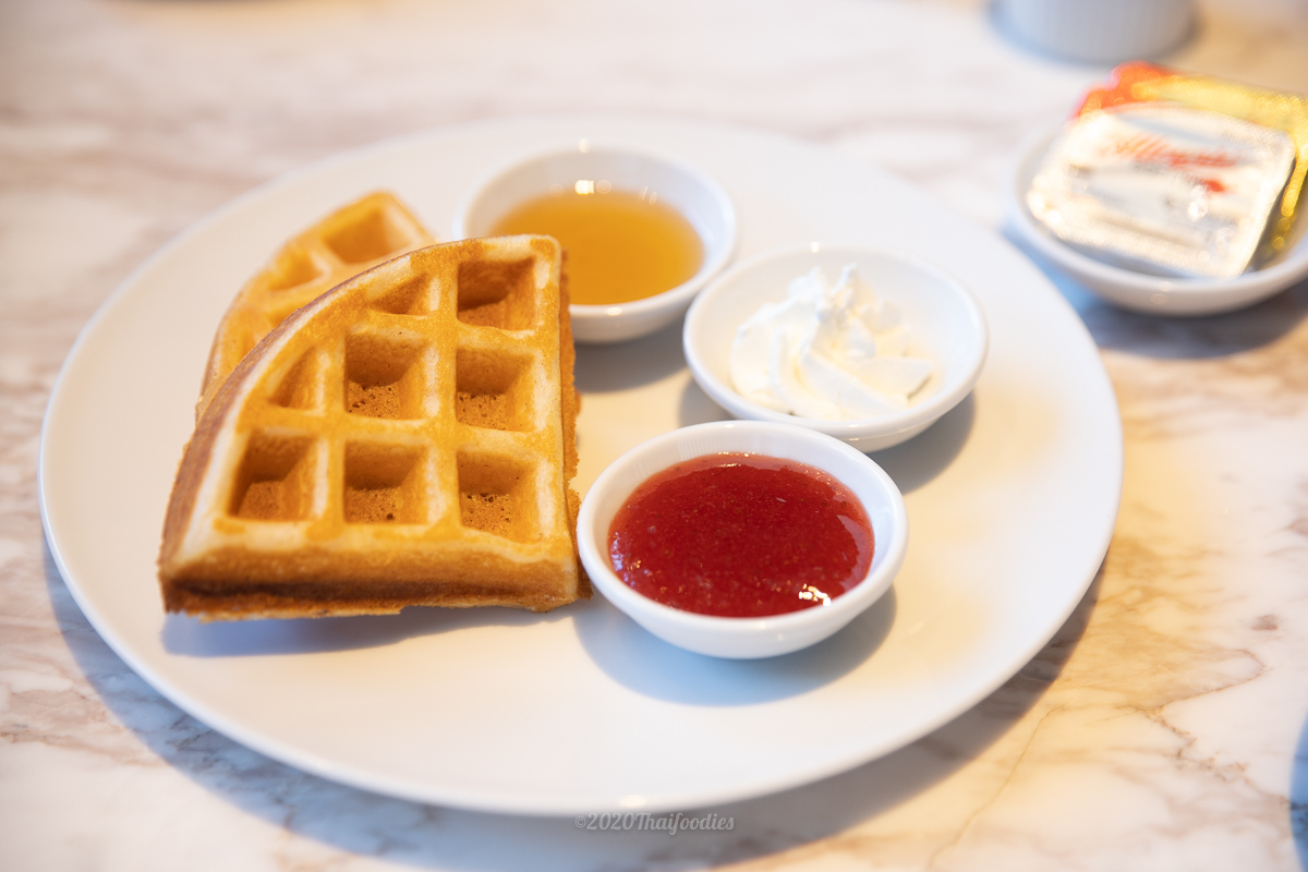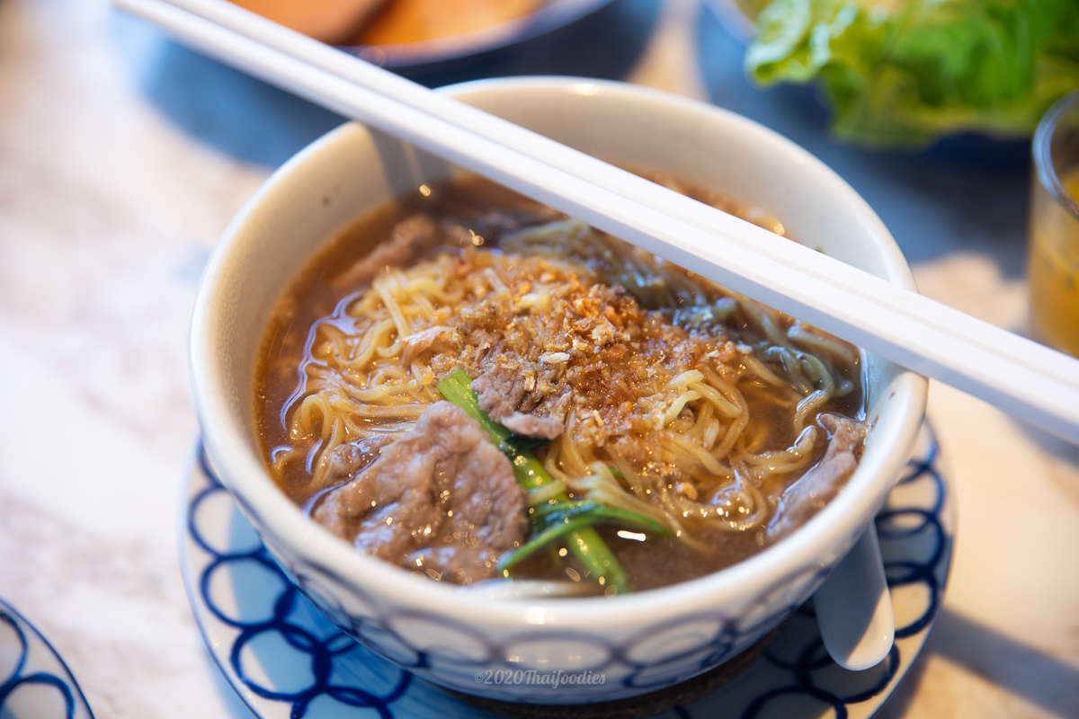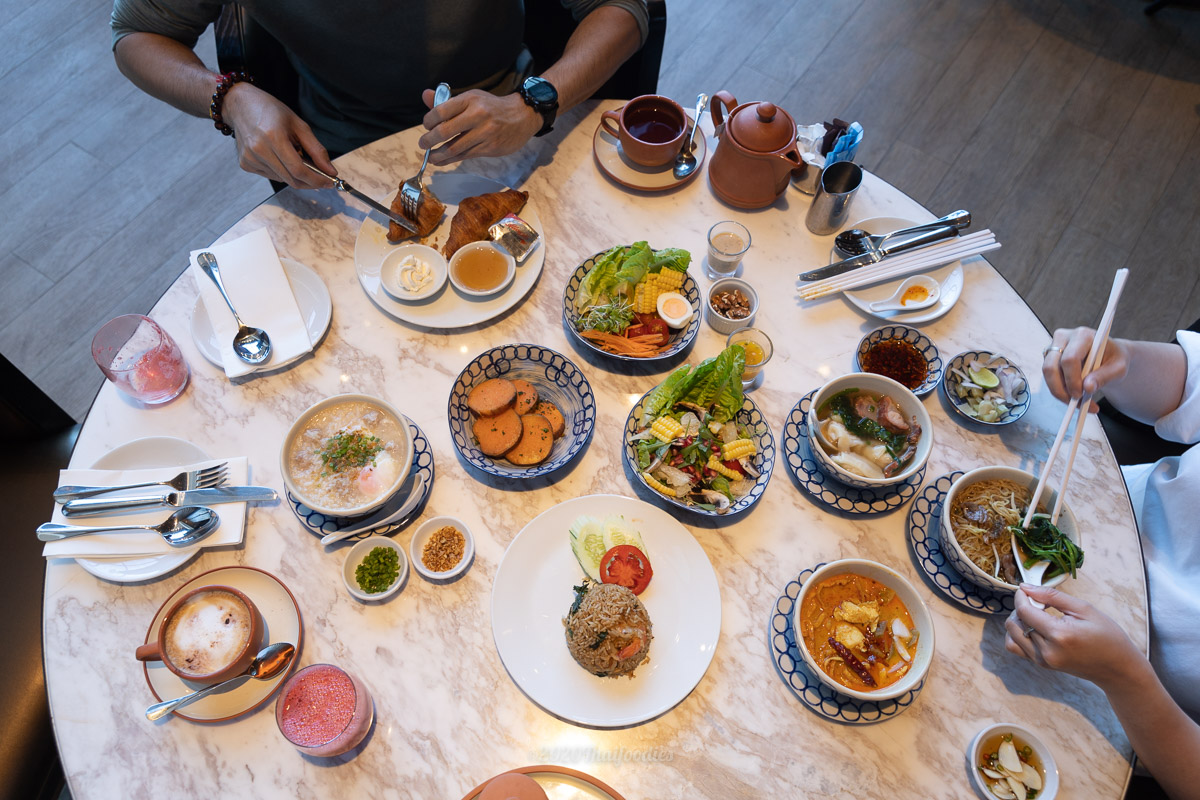 Beef noodles, Khao Soy : Chicken noodles in red curry, Croissant, Waffle, Pancakes, Minced pork stir fry with basil and rice, Boiled rice, Dumpling with roasted pork soup, Fresh fruit and vegetable juice, fresh coffee and a the most special things is they have over 6 menu for healthy breakfast such as salad, power bowl, well being bowl.