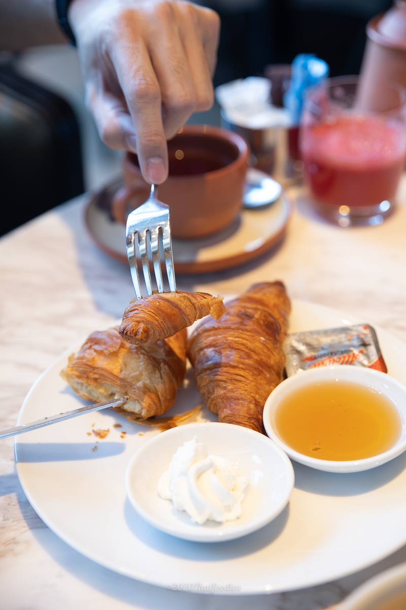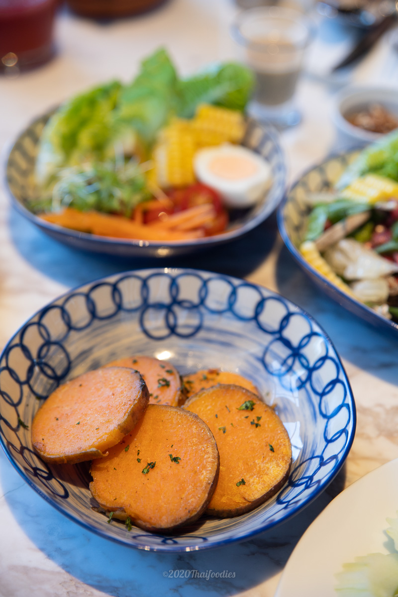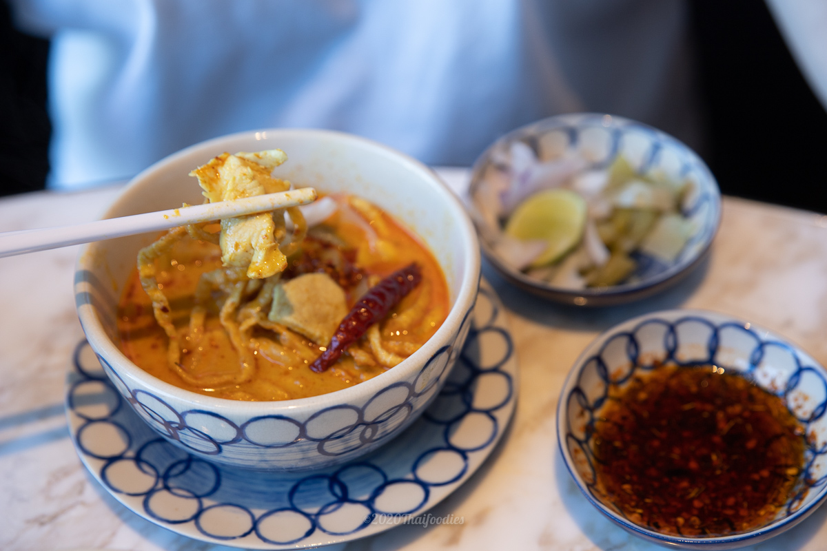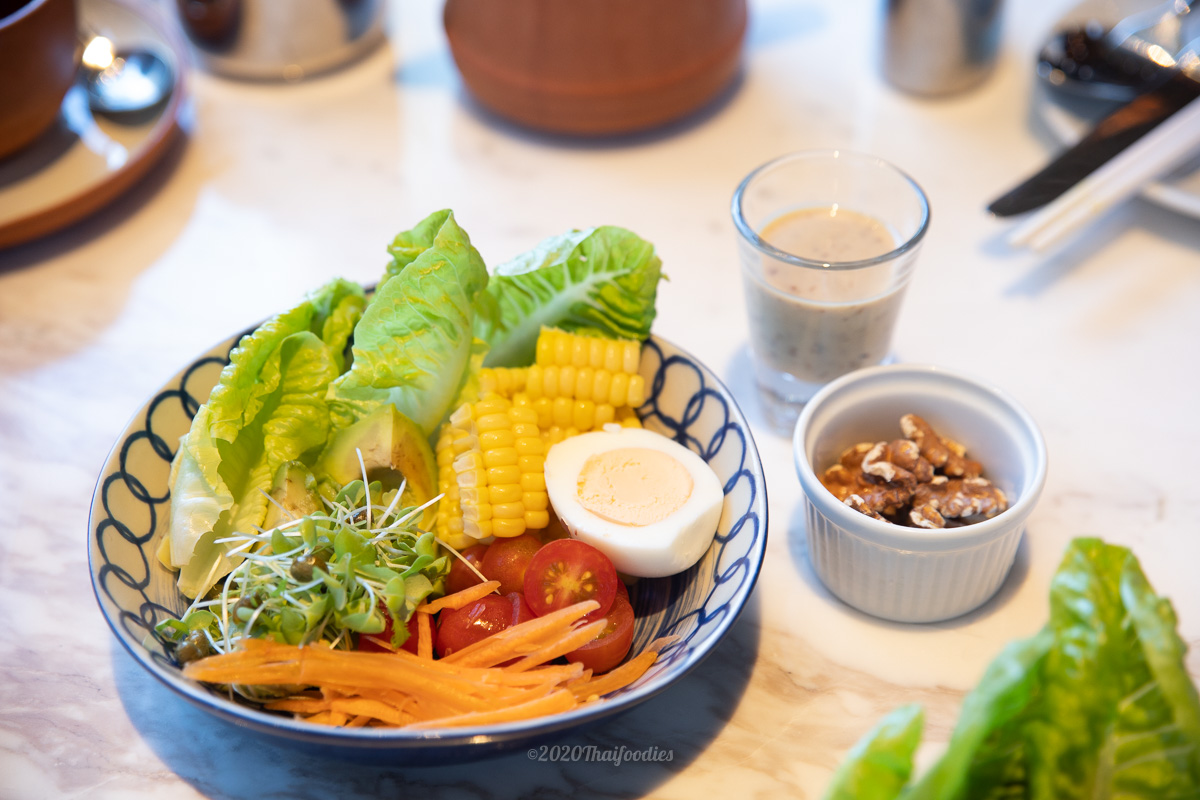 Beef noodles, Khao Soy : Chicken noodles in red curry, Croissant, Waffle, Pancakes, Minced pork stir fry with basil and rice, Boiled rice, Dumpling with roasted pork soup, Fresh fruit and vegetable juice, fresh coffee and a the most special things is they have over 6 menu for healthy breakfast such as salad, power bowl, well being bowl.